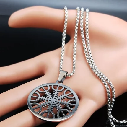 Pagan Amulet Helmet Awe Aegishjalmur Viking Compass Talisman Scandinavian Vegvisir Stainless Steel Necklaces Jewelry N3033S03