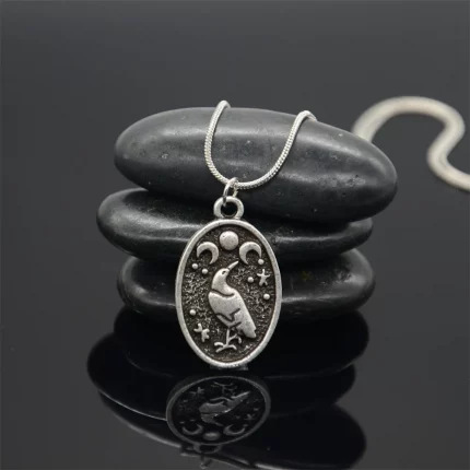 Odin Raven Triple Moon Goddess Viking Pendant Necklace Wicca Pagan Talisman Amulet Witchcraft Jewelry Valentines Day Gift