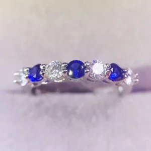 Natural Sapphire Ring with D Color Moissanite 3mm 925 Silver Lady Gift Simple Simple Birthday Present Wedding Gift