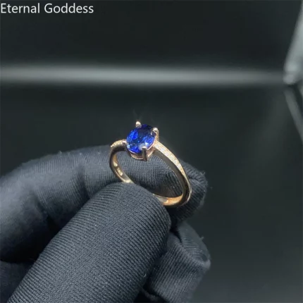Natural Sapphire Ring London Blue Classic Fashion Jewelry S925 Sterling Silver Plated 18k Yellow Gold Dark Stone Engagement