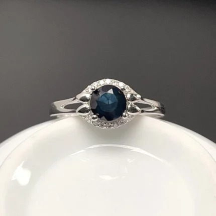 Natural Midnight Blue Sapphire Ring 6mm 1ct Genuine Sapphire 925 Silver Ring with 18K Gold Plating Gift for Women