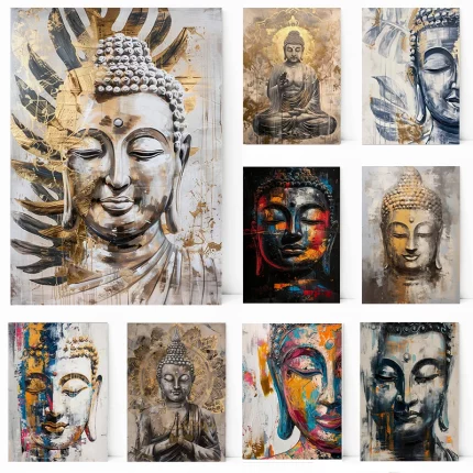 Religious Abstract Meditating Buddha Statue Sitting Lotus Poster Canvas Painting Wall Art Picture Modern Room Home Decor Cuadros
