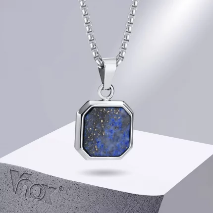 Vnox 15mm Square Pendant Necklace for Men, Gemetric Enamel Lapis Lazuli Stone Pendant with Box Chain, Simple Sport Neck Collar