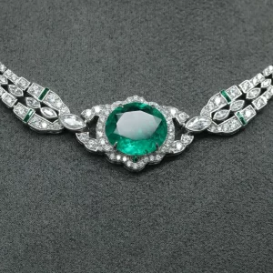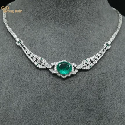 Wong Rain Vintage 100% 925 Sterling Silver 14*16 MM Oval Cut Emerald High Carbon Diamond Gemstone Pendant Necklace Fine Jewelry