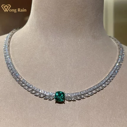 Wong Rain Vintage 925 Sterling Silver Emerald High Carbon Diamond Gemstone Sparkling Necklace Pendant Jewelry Anniversary Gifts