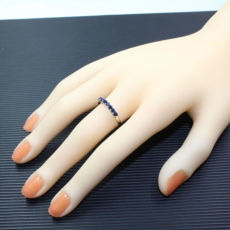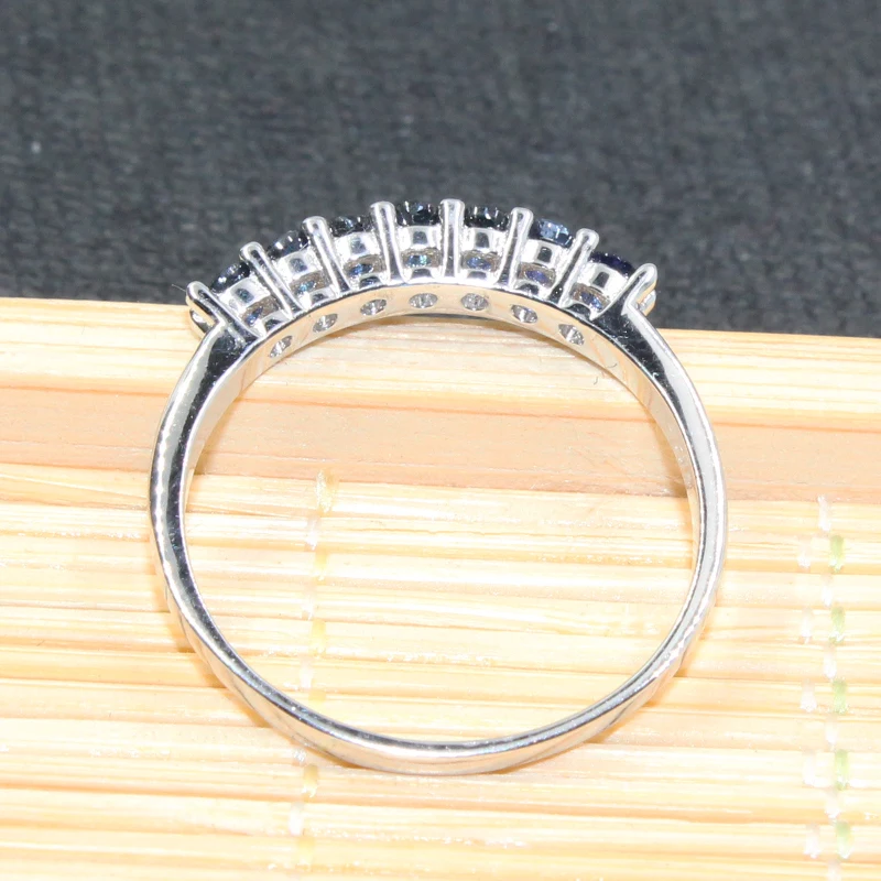 100% Natural Dark Blue Sapphire Ring for Woman 7 PCS 2.5 Mm SI Grade Sapphire Ring Solid 925 Silver Sapphire Ring Romantic Gift