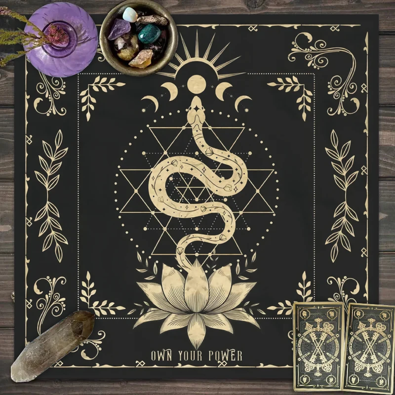 1pc Tarot tablecloth with your power, snake shaped floral and plant print astrology tablecloth, altar decoration tablecloth