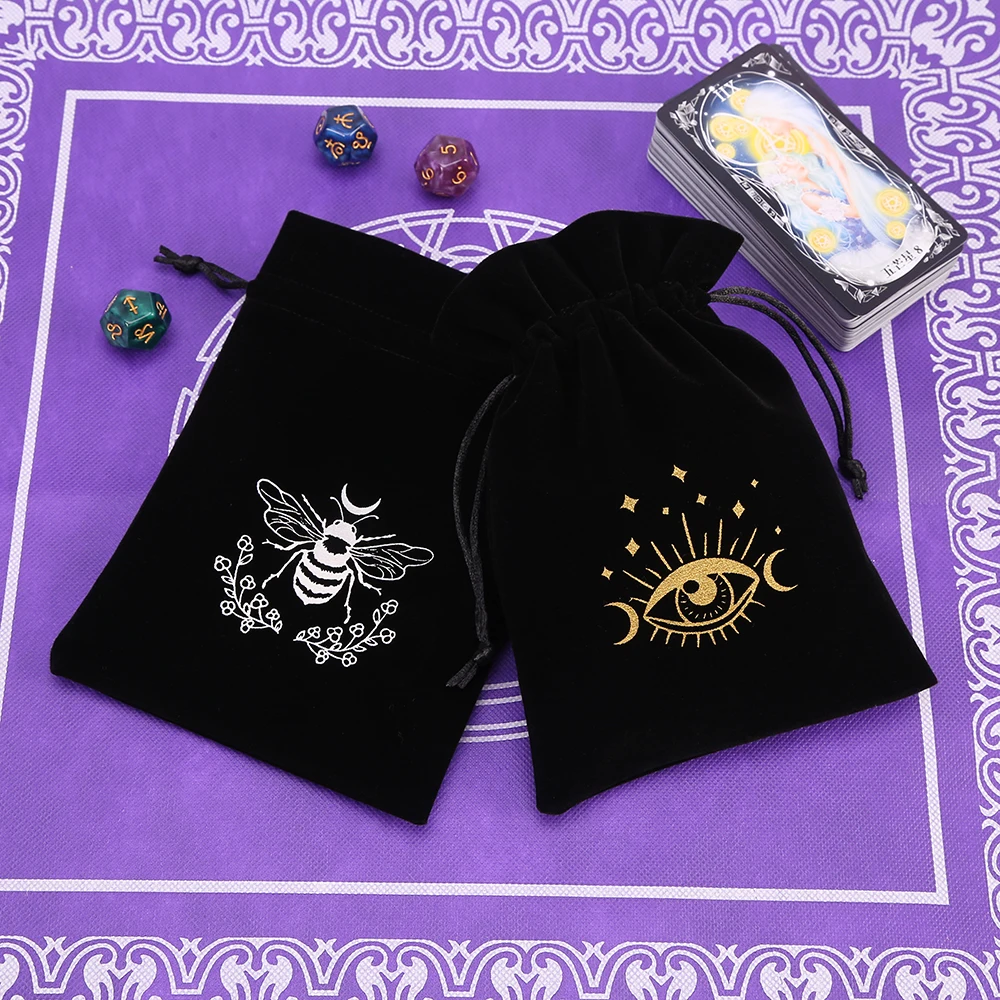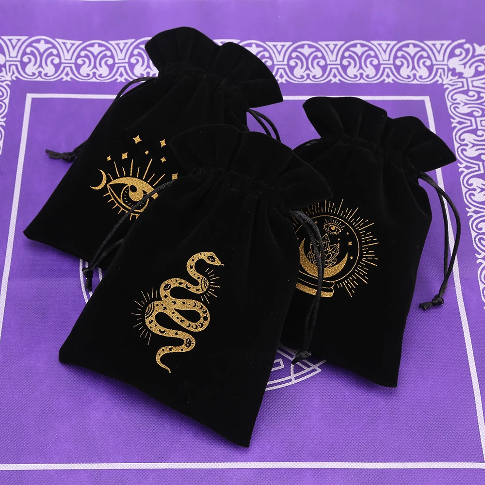 1pcs Black Velvet Tarot Storage Bag Mini Drawstring Package Witch Divination Crystal Pouch Bag Dice Holder Board Game Gold