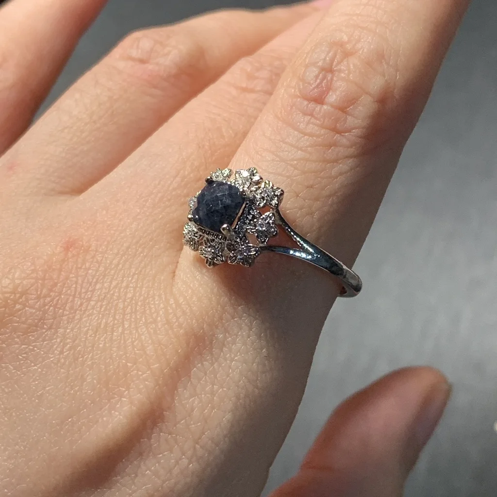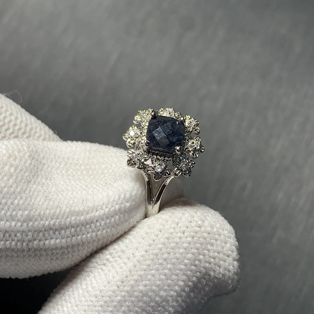 This ring is guaranteed to be made of natural sapphire, but the grade of the stone is semi precious, not transparent, and there are some impurities. Please take a closer look at the picture.