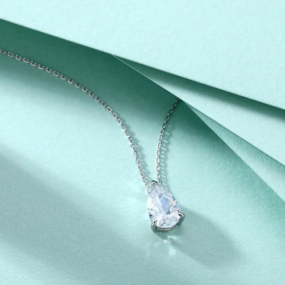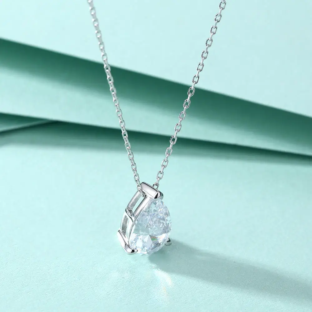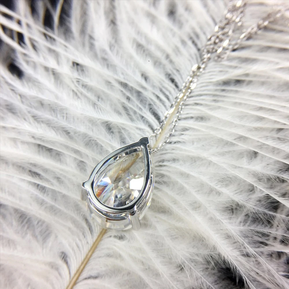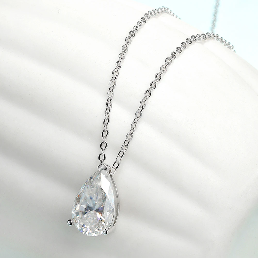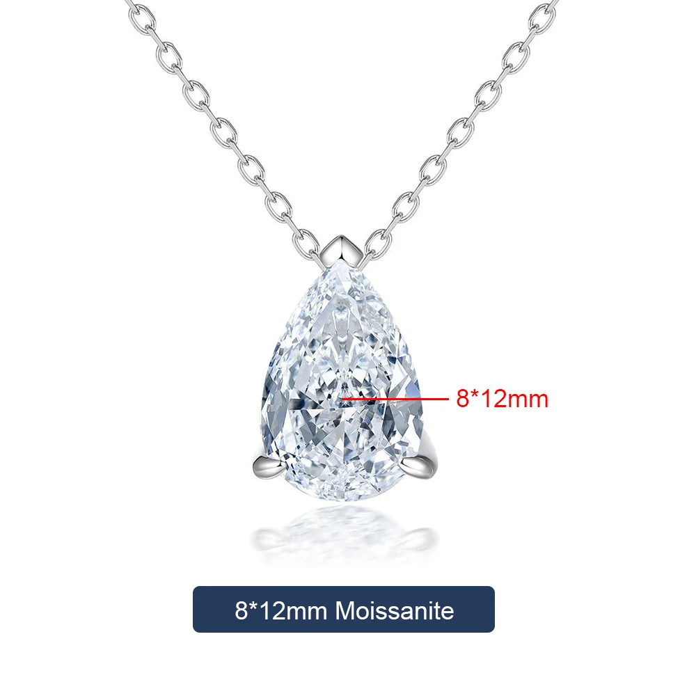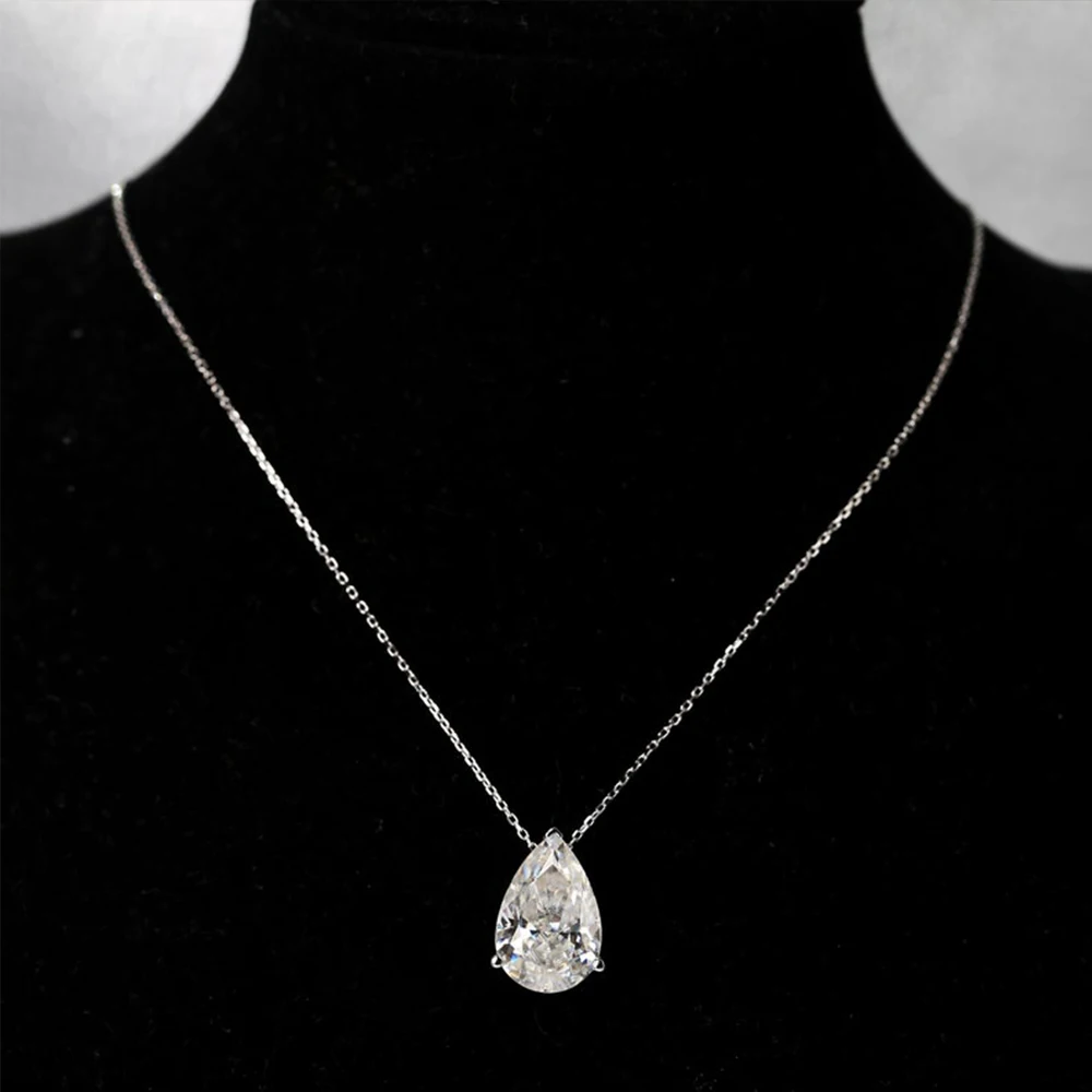4CT Pear Cut D VVS1 Moissanite Pendant Necklace for Women 925 Sterling Silver Plated 18K White Gold Waterdrop Neck Chain Jewelry