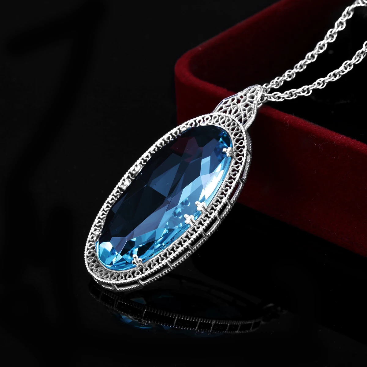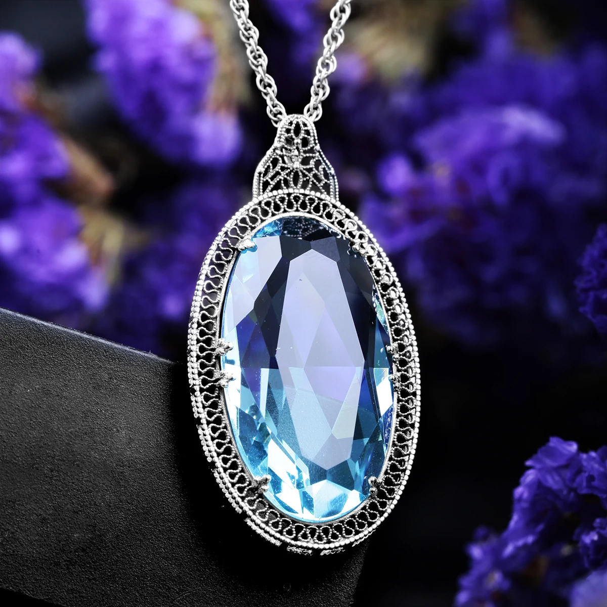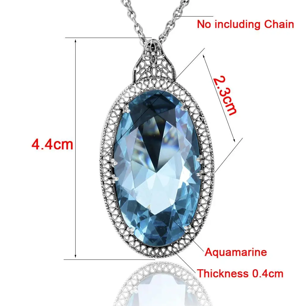 925 Sterling Silver Pendants For Women Vintage Oval Aquamarine Gemstone Pendant Necklace Gothic Style Fine Jewelry Wholesale New