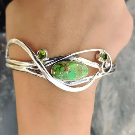 1 Piece Vintage Oval Bohemian Style Alloy Natural Stone Green Color Women’s Bracelet Outdoor Vacation Beach Party