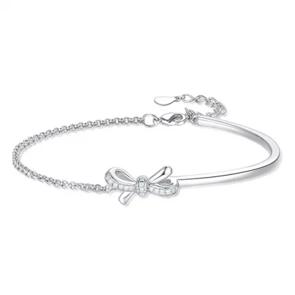 S925 Sterling Silver Bracelet Bow Design Sense Of Advanced Semi-circle Light Luxury Diamond Mosaic Lovely Women Jewelry Gift