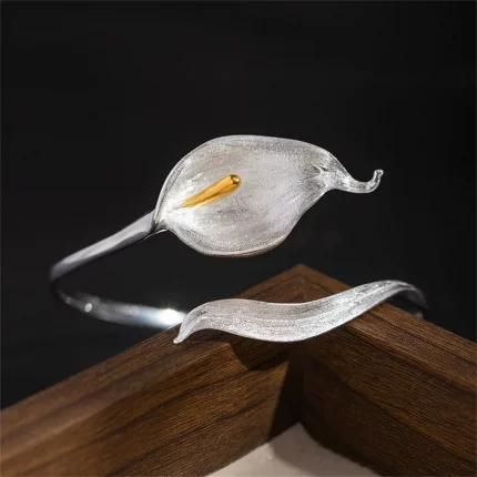 Retro S925 Sterling Silver Simplicity Calla Lily Bracelet for Women Fine Fashion Party Weddings Jewelry Personality Design