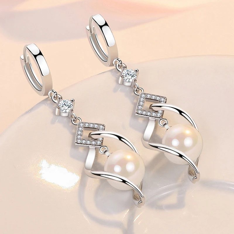925 Sterling Silver AAA Zircon Natural Pearl Earrings For Women Fashion Gorgeous Wedding Engagement Party Jewelry
