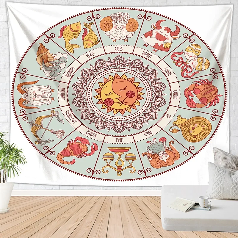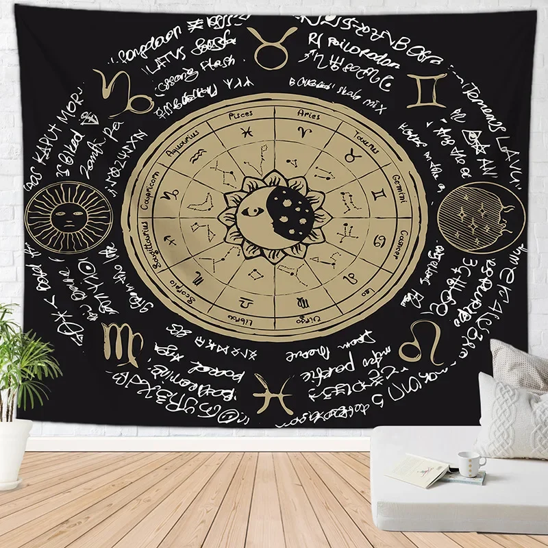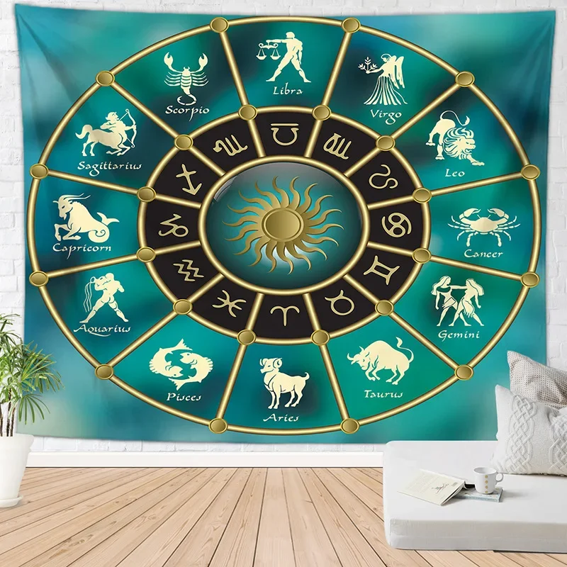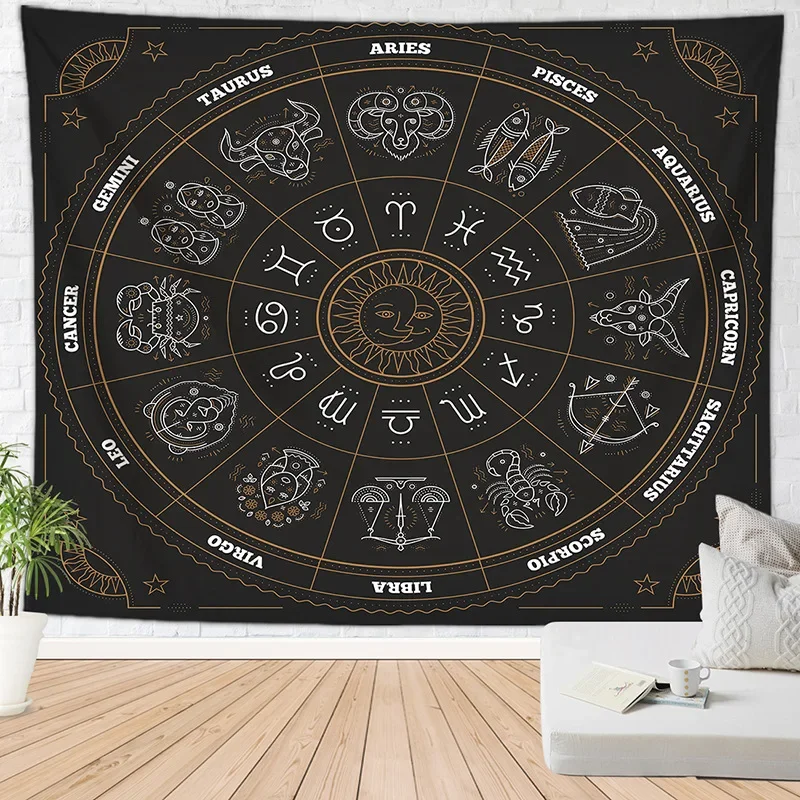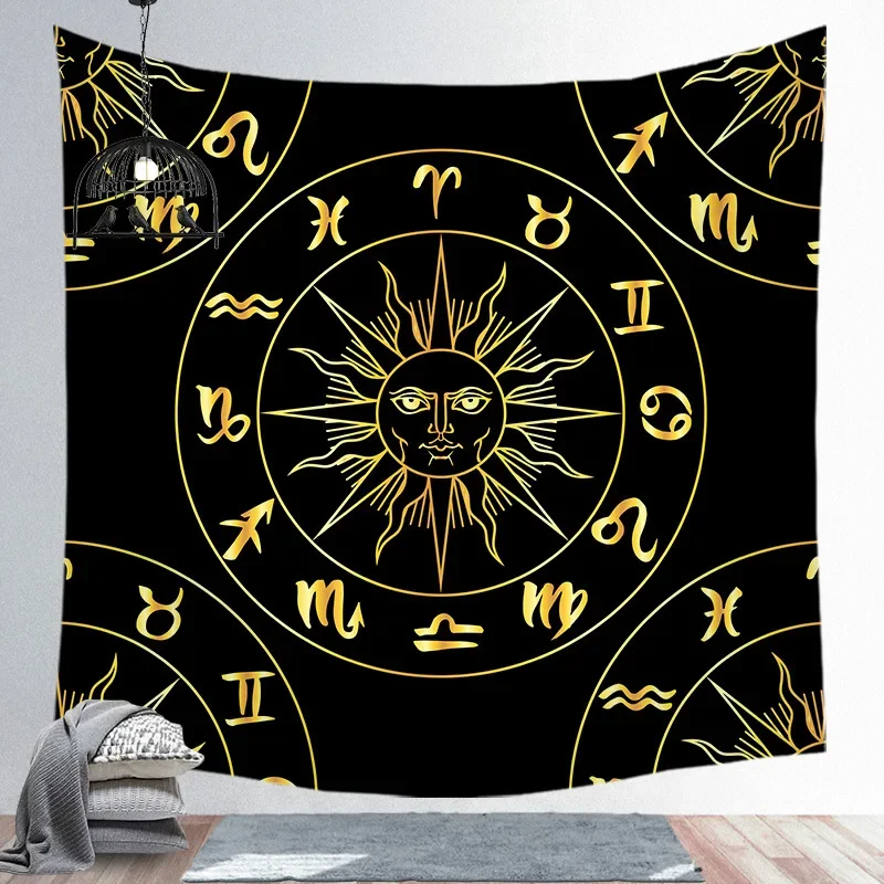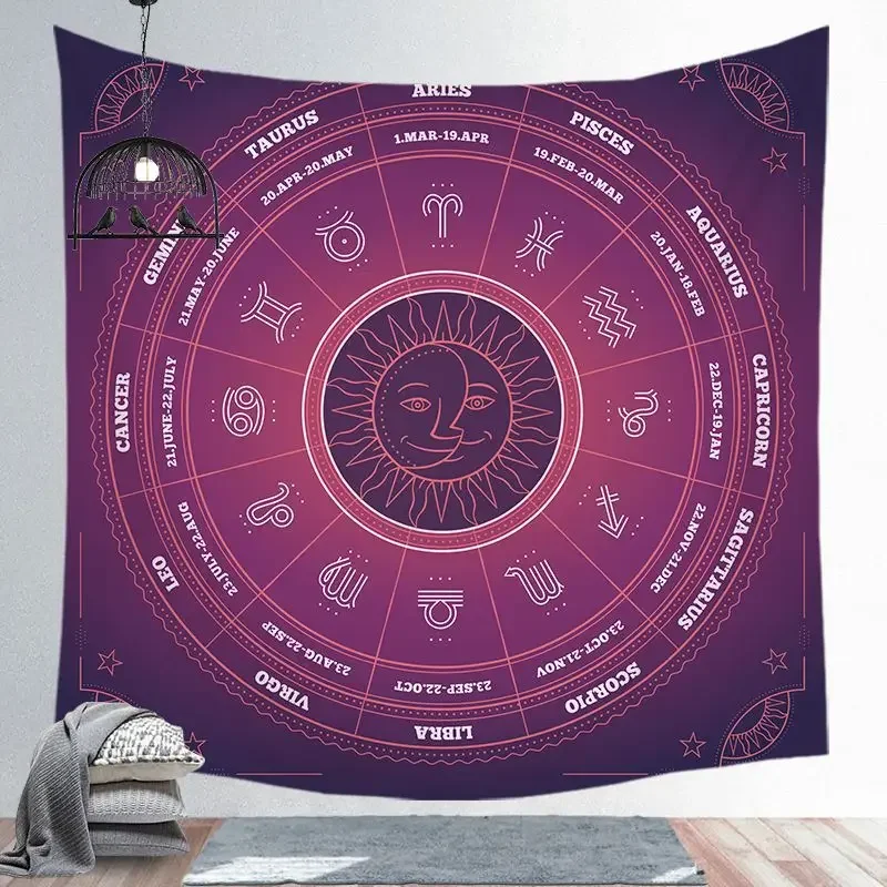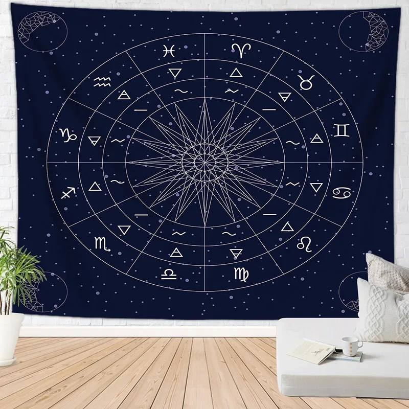 Blue Tarot Tapestry Wheel Zodiac Astrology Chart Wall Hanging Scarf Altar cloth tarot cloth tarot deck Sun and Moon Home Decor