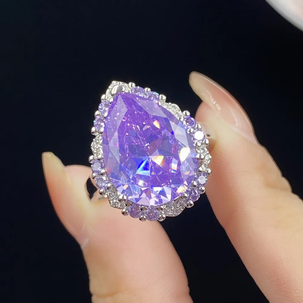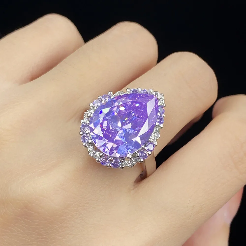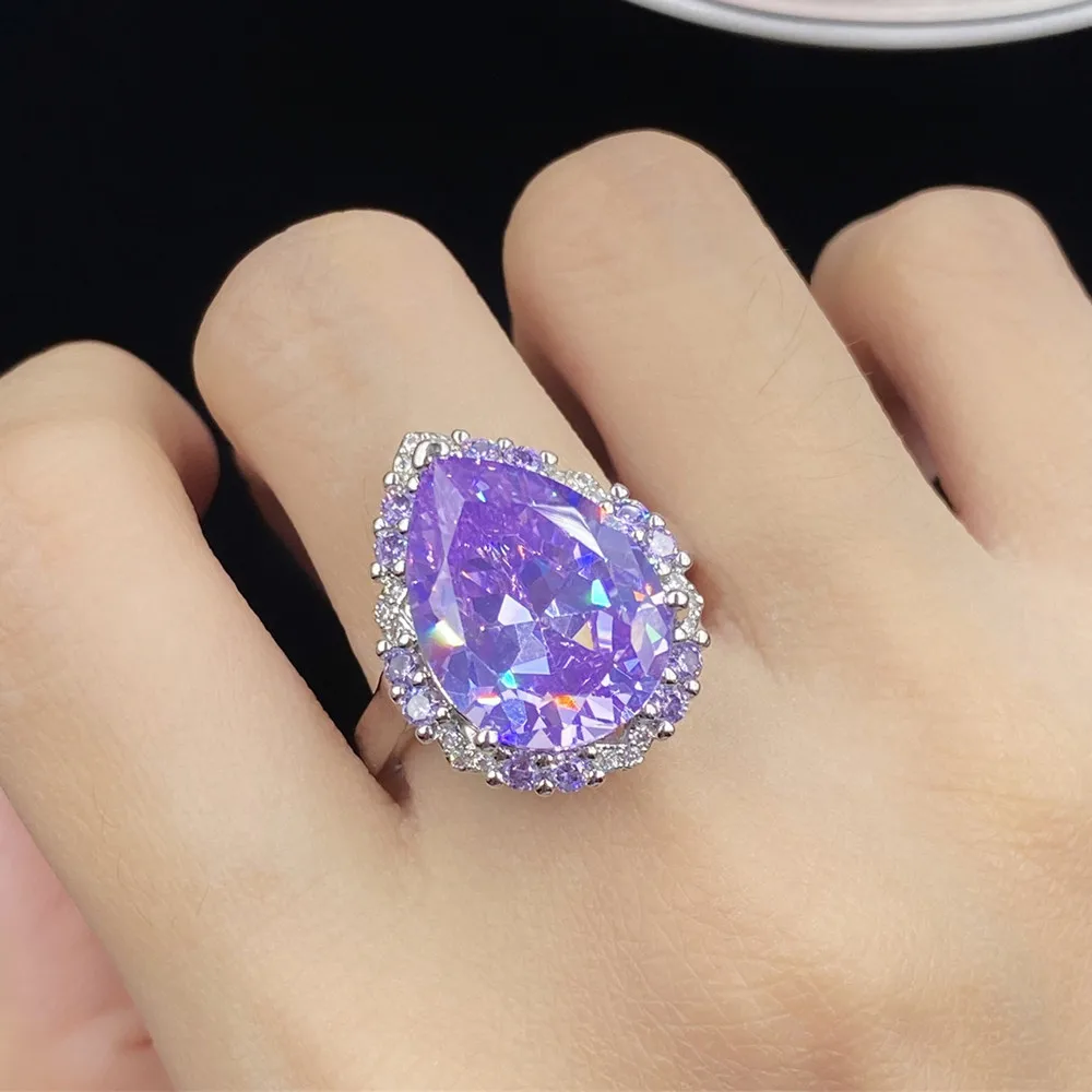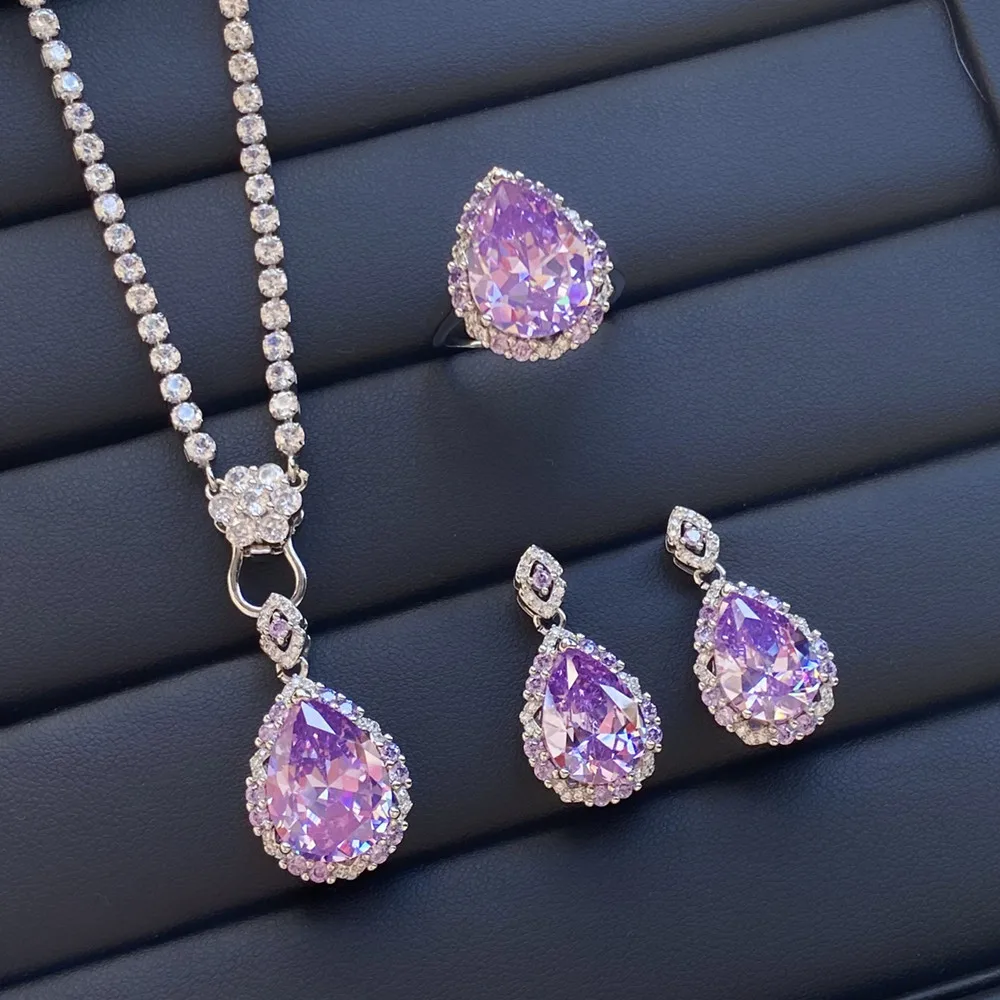1. high grade purple gemstones water drop shape pendant necklaces & rings & earrings for women, with AAA zircon diamonds inlaid, elegant, charming and trendy.