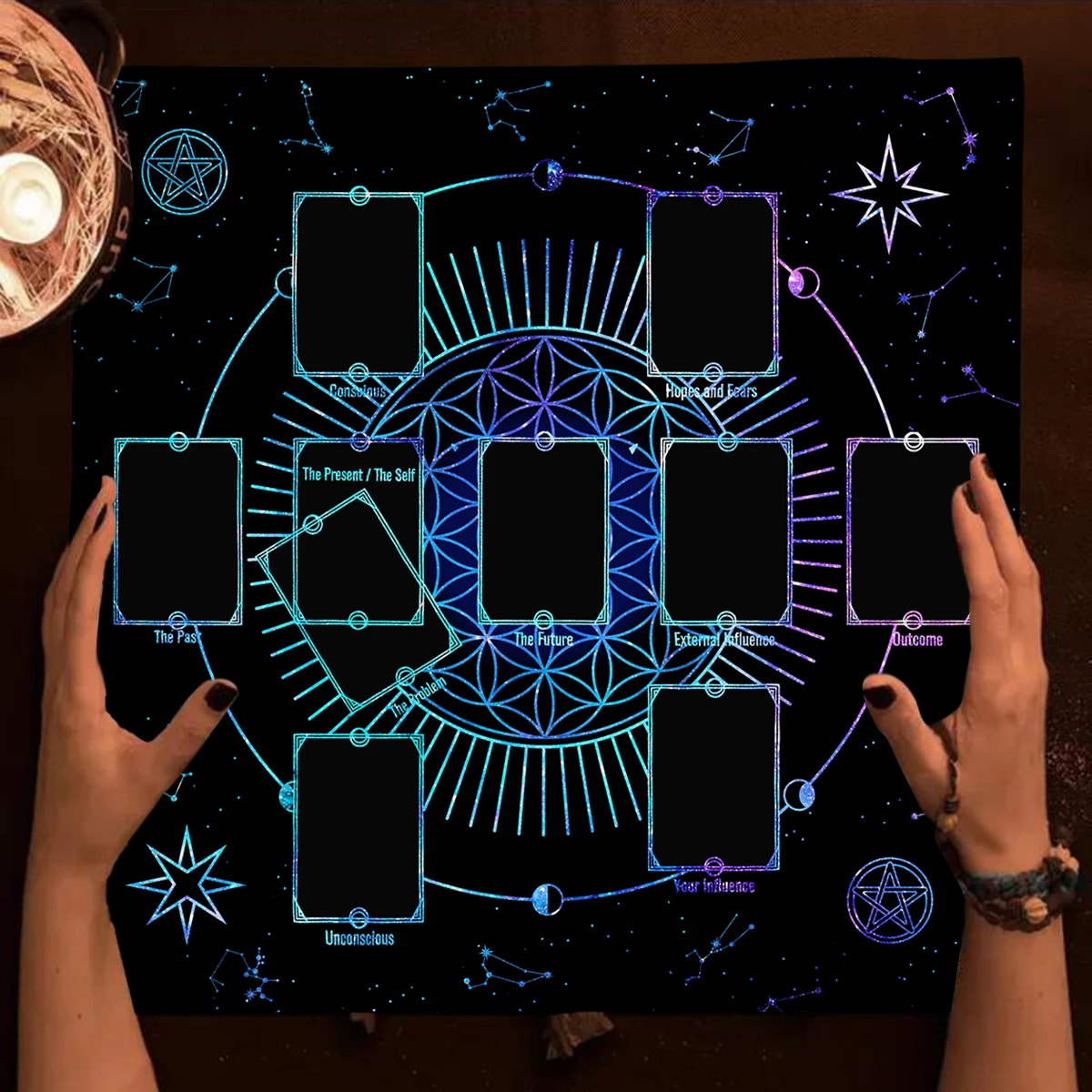 Celtic Cross Flower of Life Tarot Card Tablecloth Altar Cloth Constellation Divination Cloth For Tarot Mat Witchy Home Decor