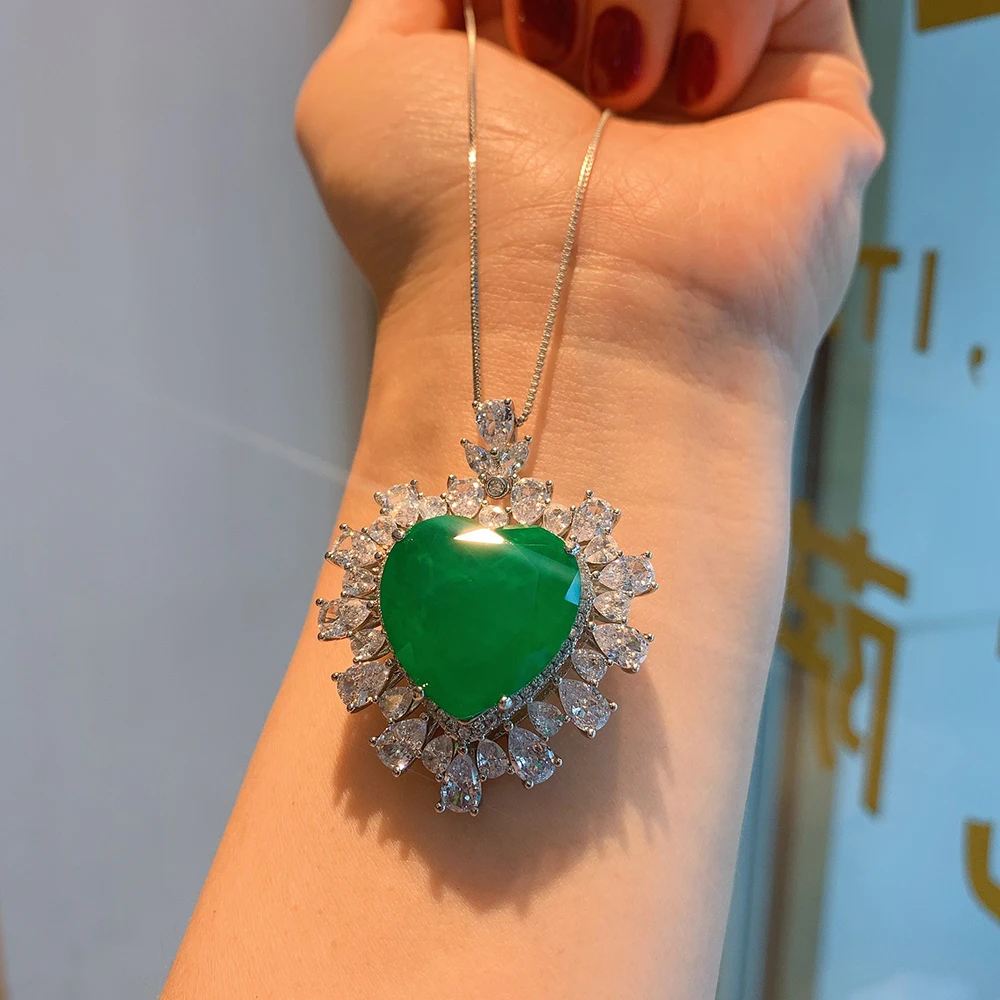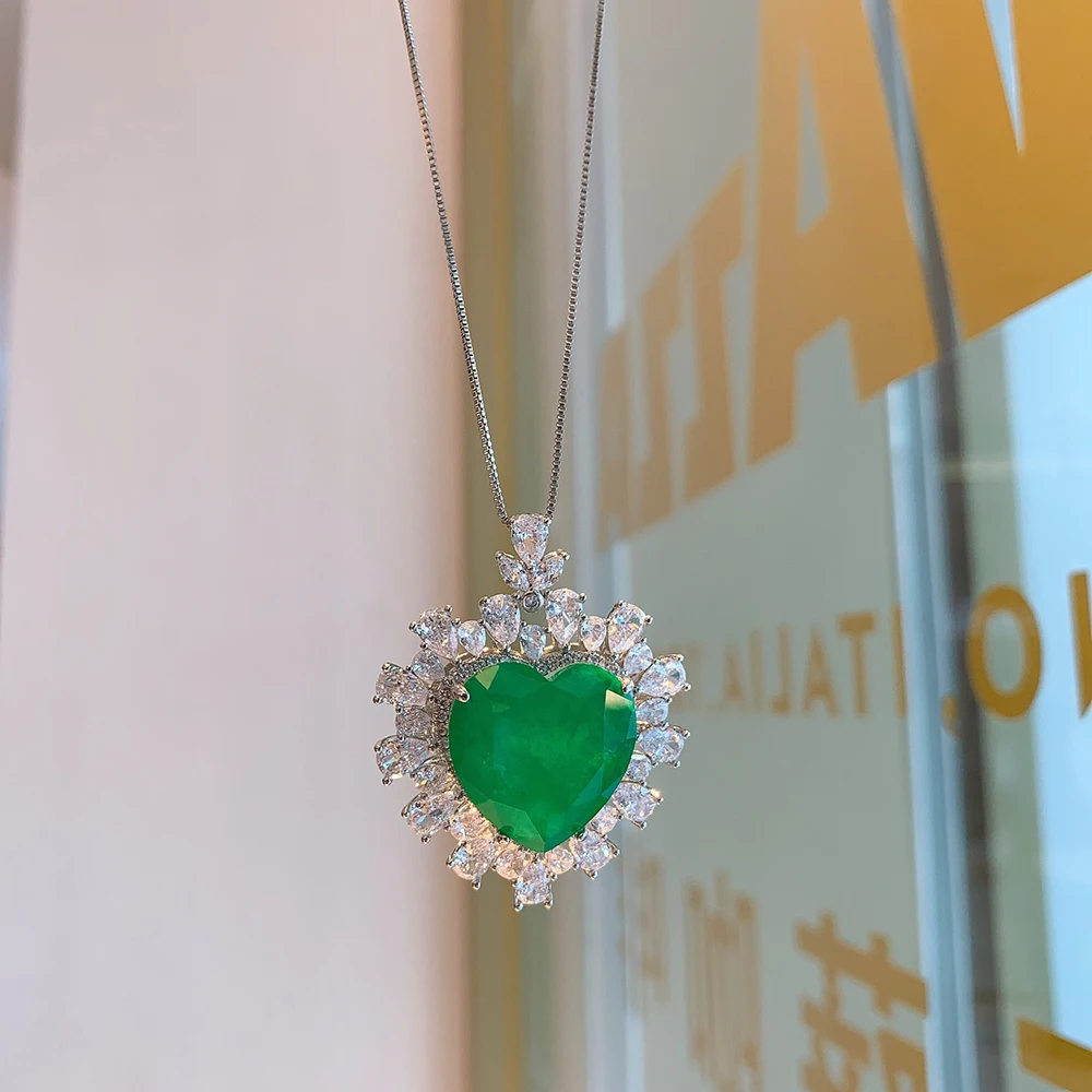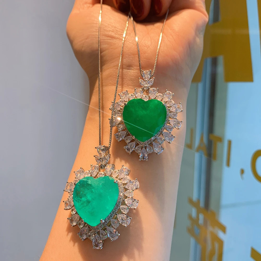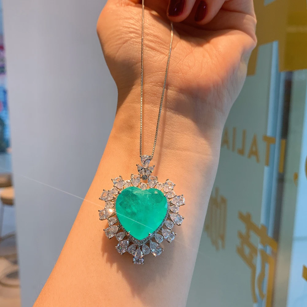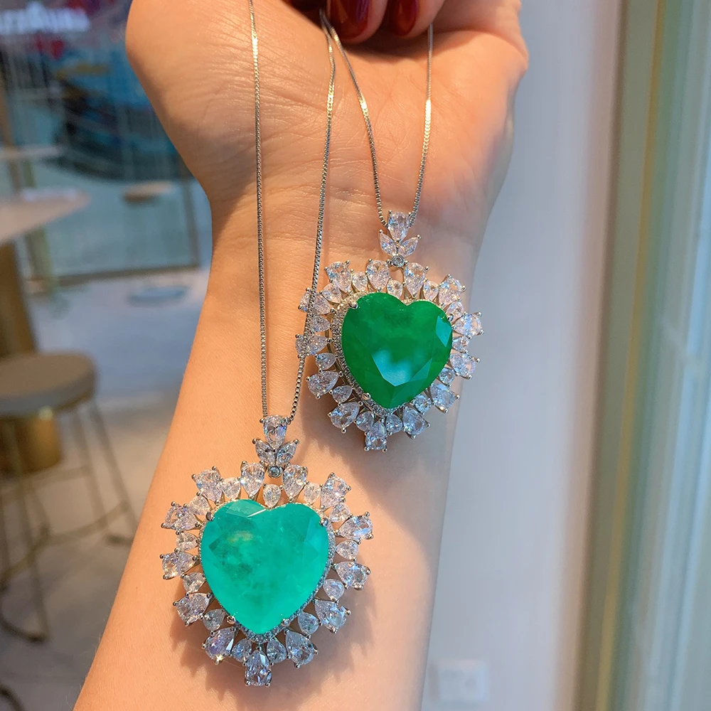 Charms 20*20mm Hear-Shaped Paraiba Tourmaline Emerald Lab Diamond Gemstone Pendant Necklace for Women Wedding Party Fine Jewelry
