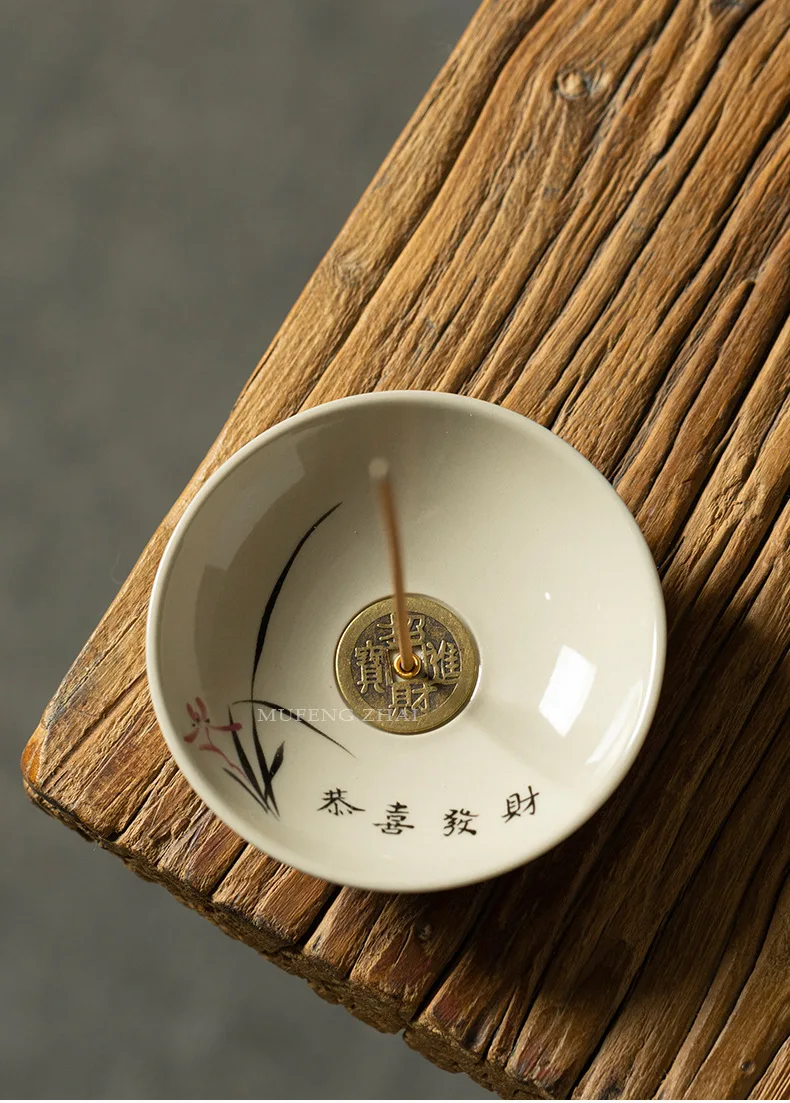 Creative Ceramic Line Incense Burner Household Agarwood Sandalwood Plate Smoking Tea Room Incense Path Incense Insert