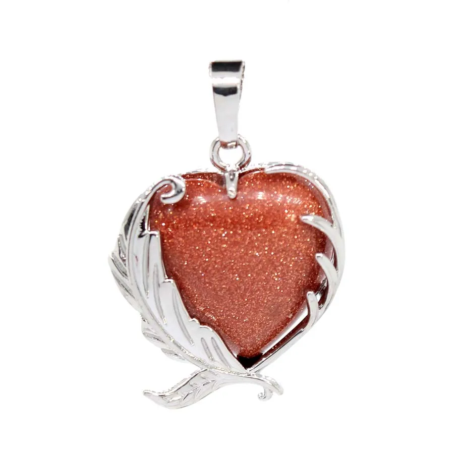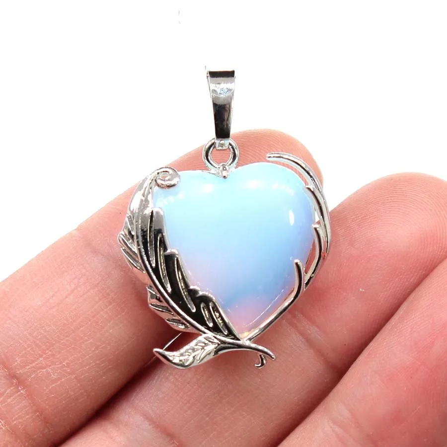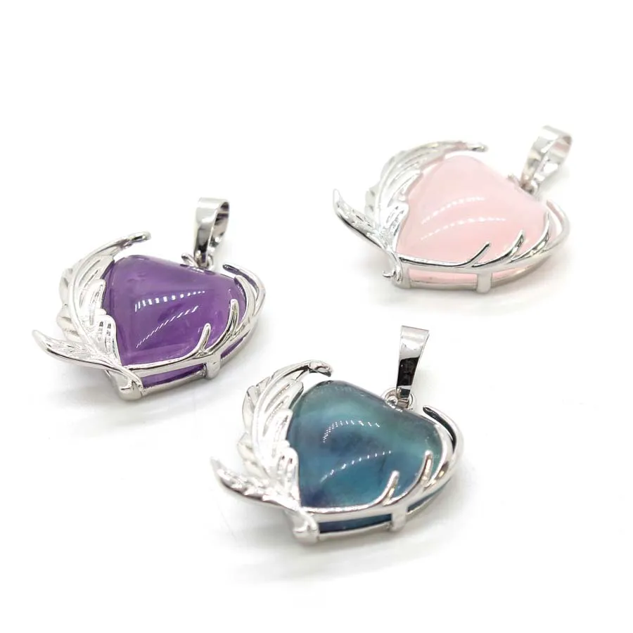 Crystal Heart Stone Pendants For Women Necklace DIY Natural Amethyst Rose Quartz Lapis Lazuli Fluorite Pendant Jewelry Finding