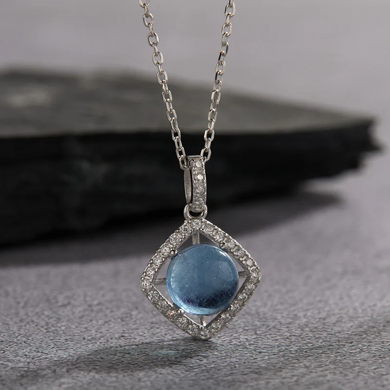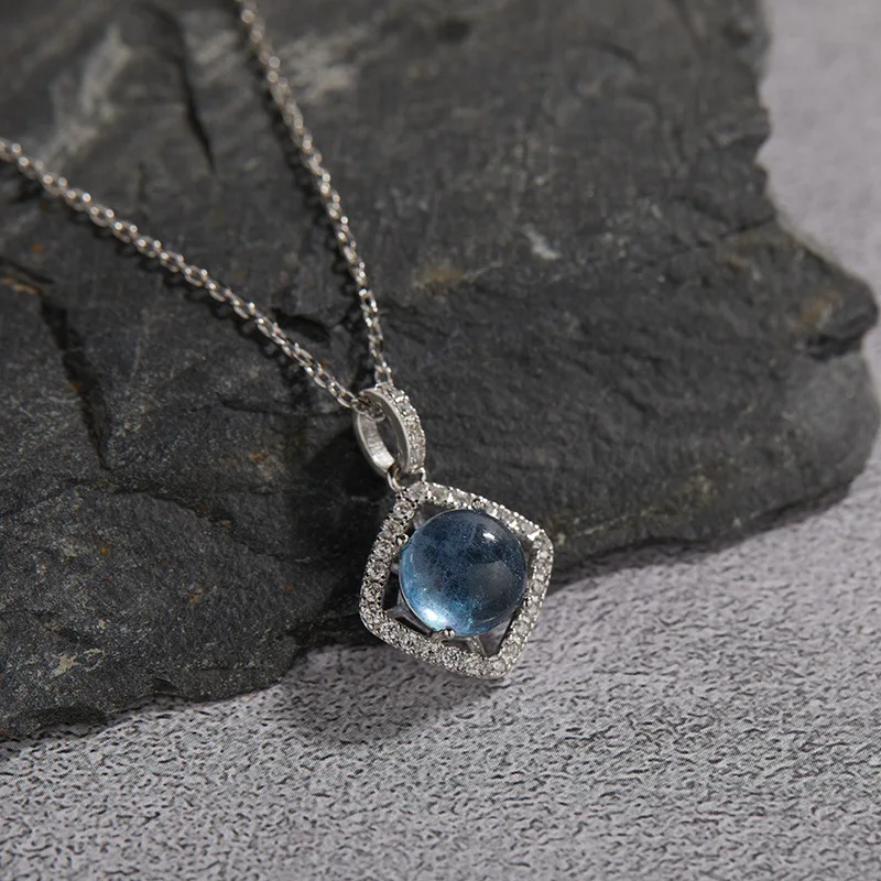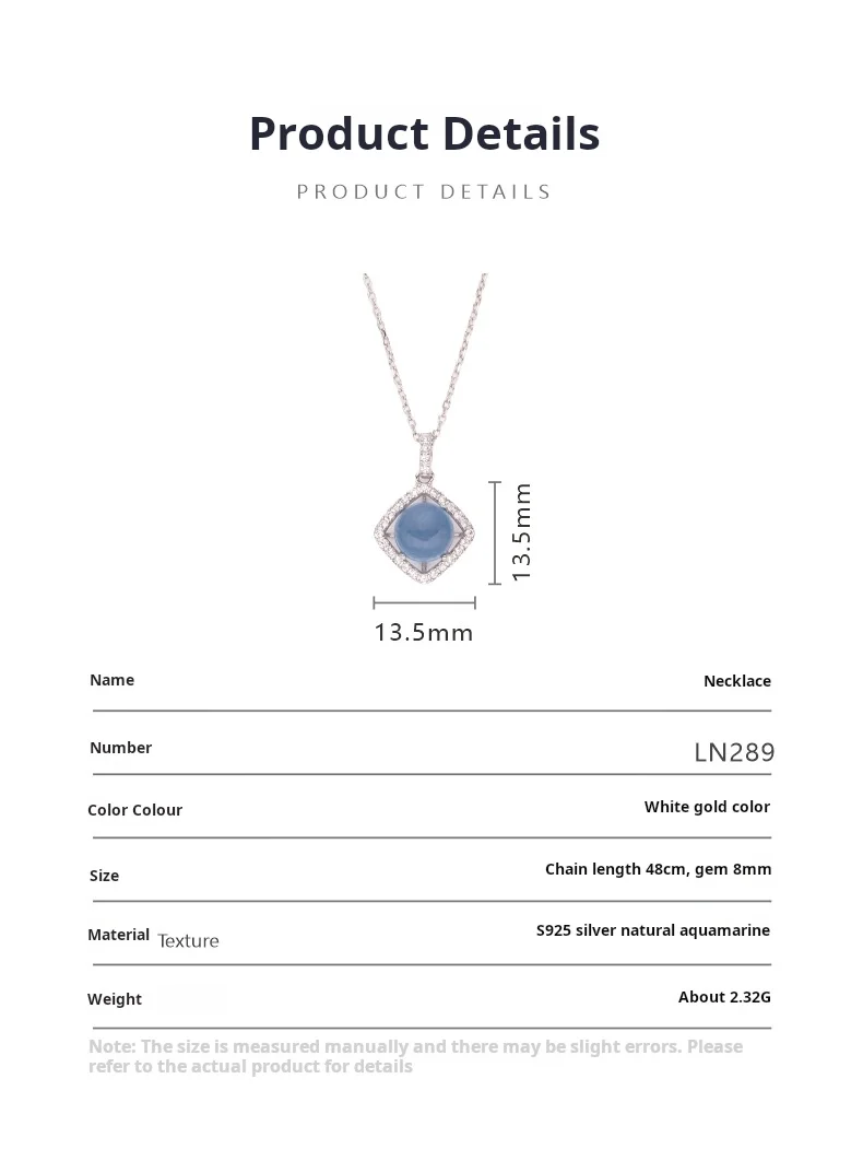Be the first to review “Dawn’s Jewel S925 Sterling Silver Natural Aquamarine Colored Gems Necklace Women’s Fashion Personality All-match Square Pendant”