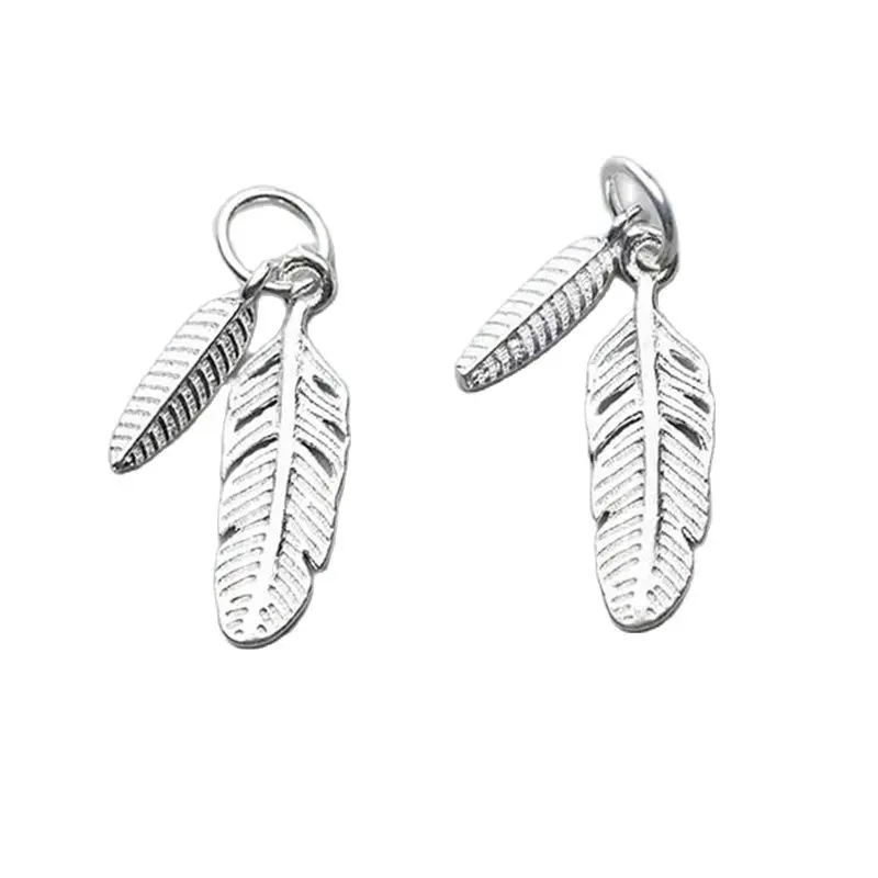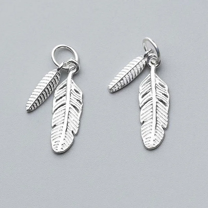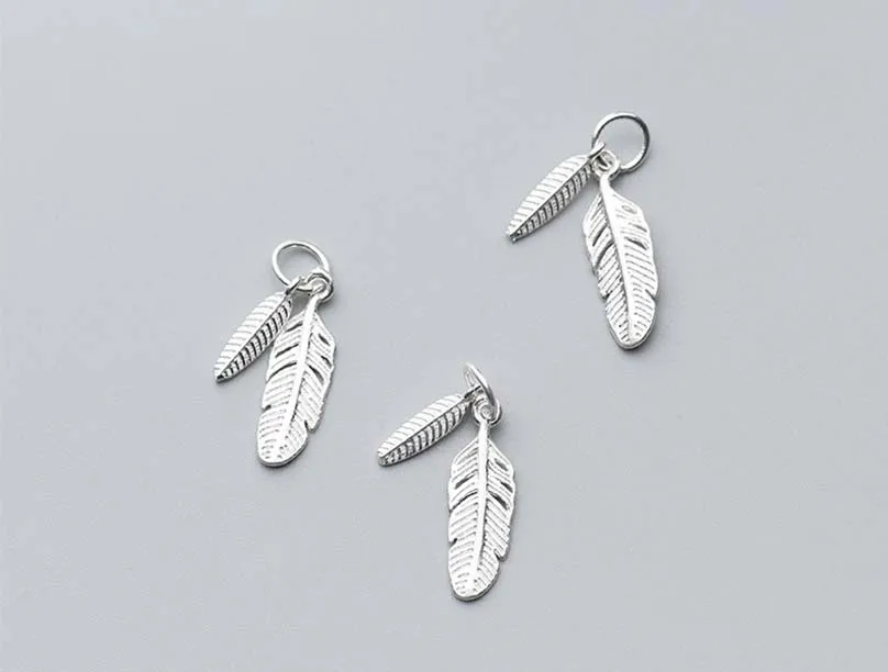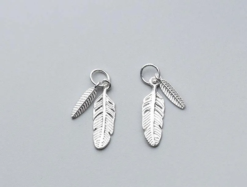 Fashion Classic Feather Design Charms 925 Sterling Silver Men Women Jewelry Accessories DIY Earrings Necklace Pendant Materials