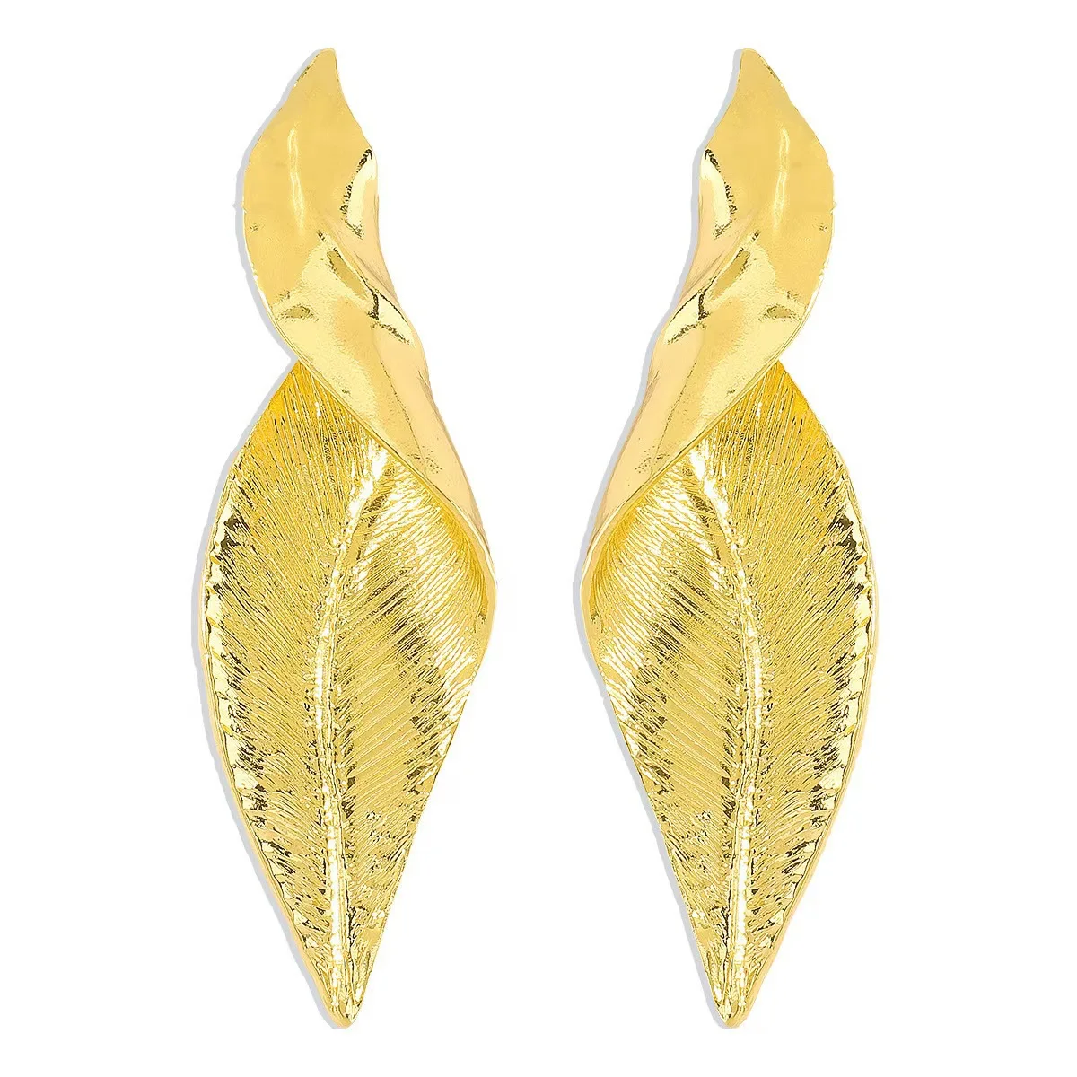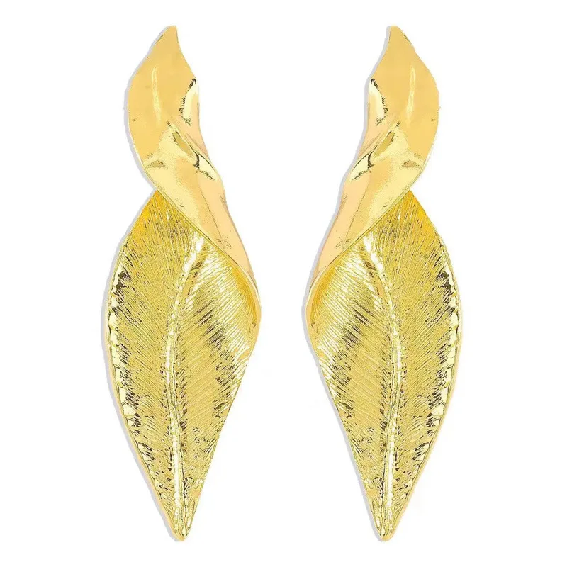 XIALUOKE Vintage Geometric Metal Leaf Stud Earrings For Women Punk Exaggerated Gold Color Earrings Party Jewelry Gifts