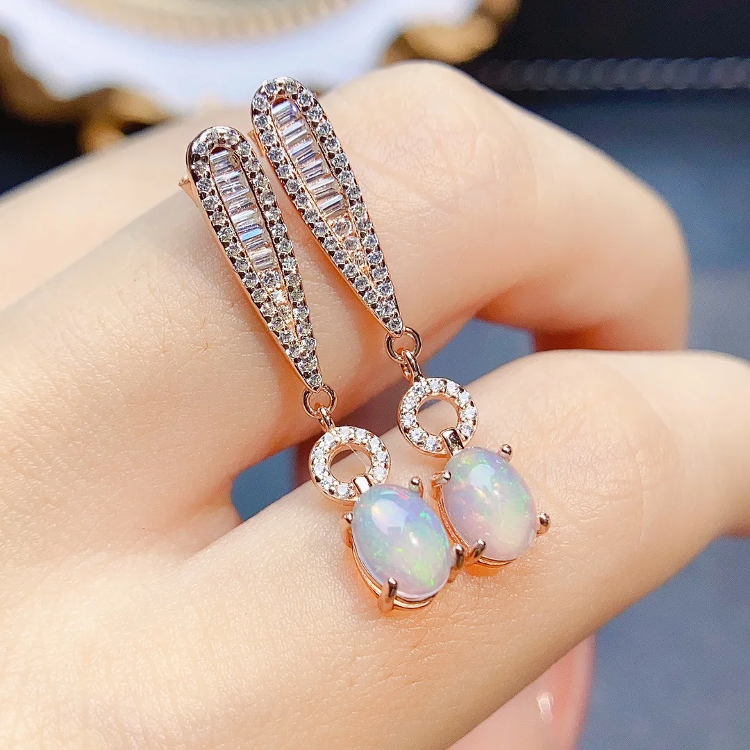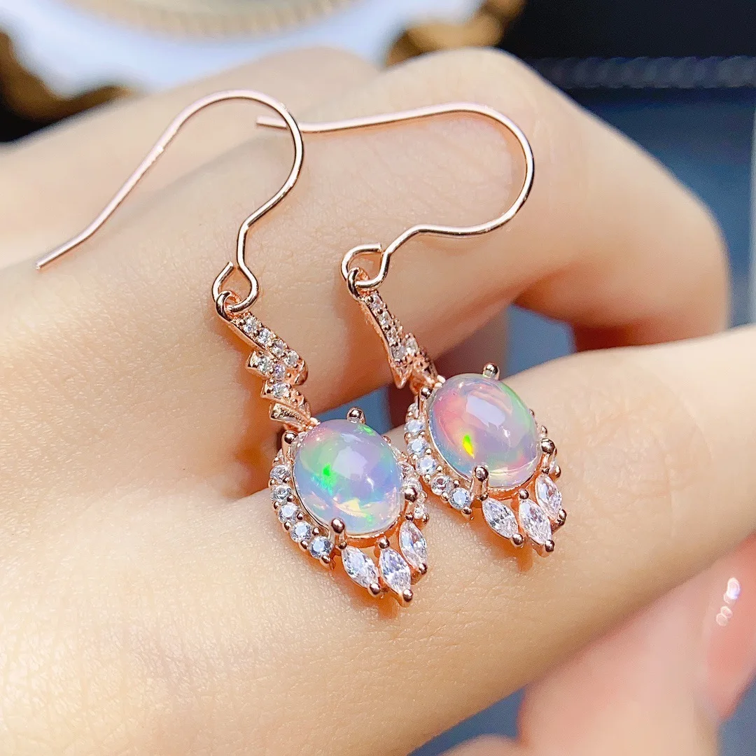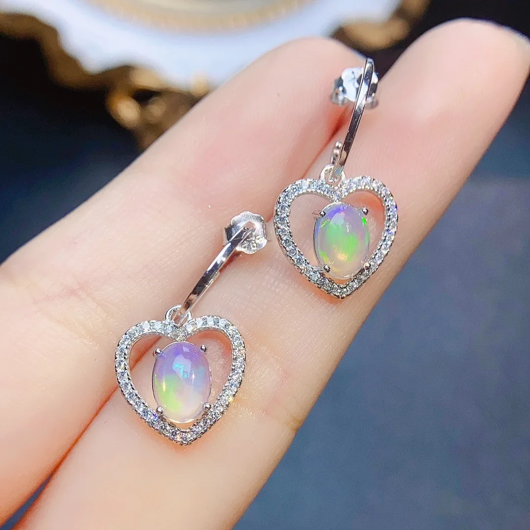 FS Fashion Real S925 Sterling Silver Inlay Natural Opal Earrings With Certificate Fine Weddings Jewelry for Women MeiBaPJ