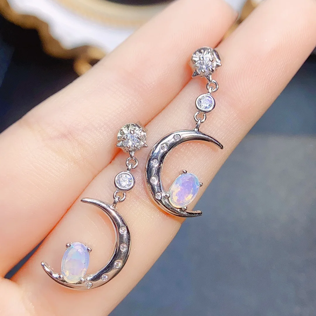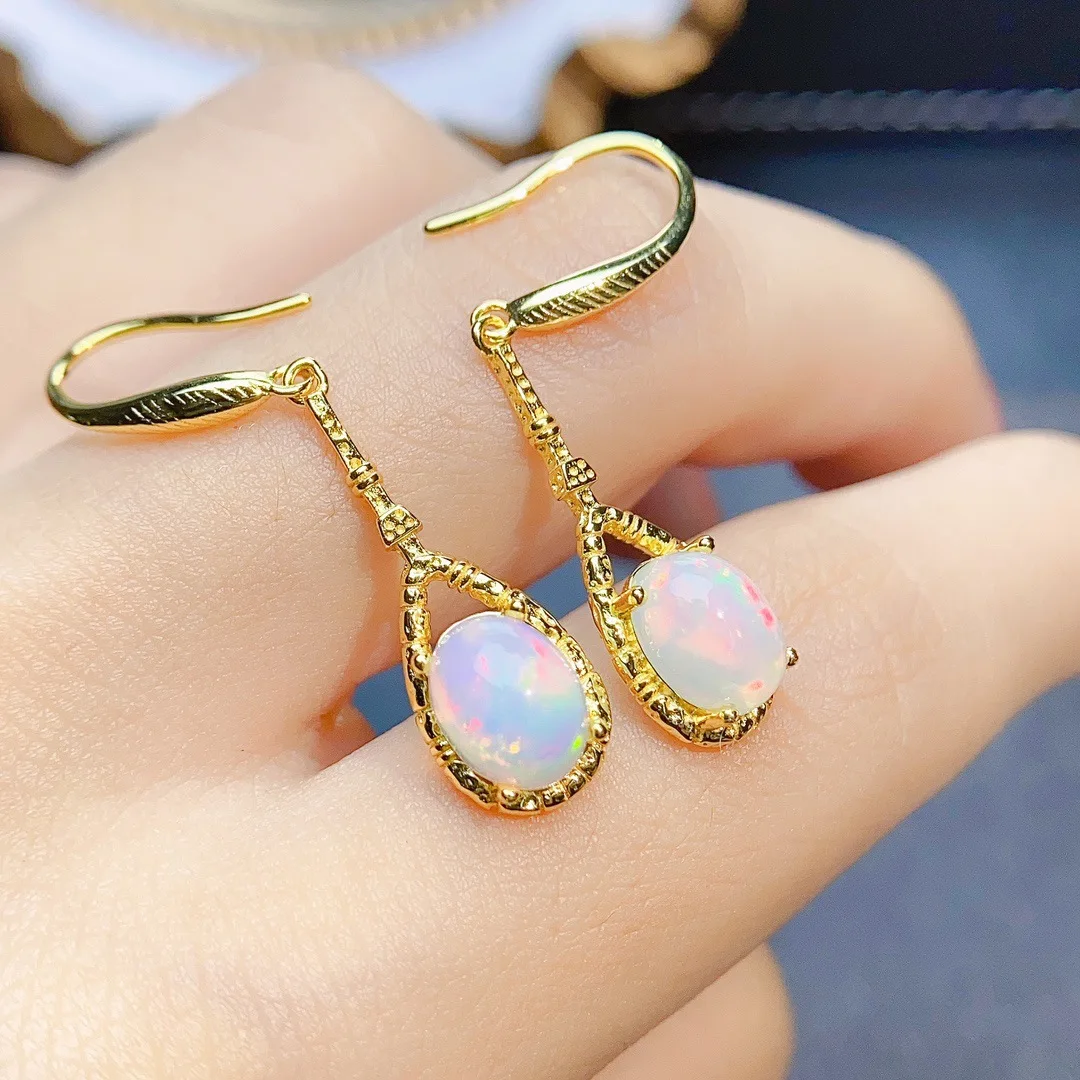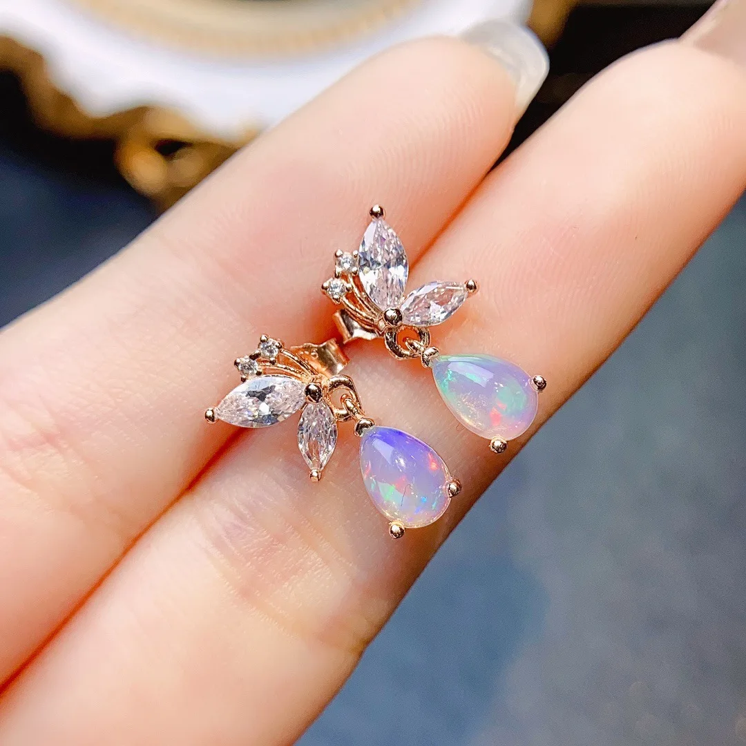 FS Fashion Real S925 Sterling Silver Inlay Natural Opal Earrings With Certificate Fine Weddings Jewelry for Women MeiBaPJ