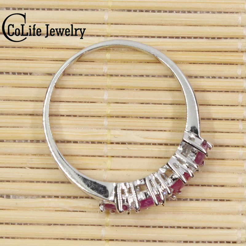 Hotsale Silver Ruby Engagement Ring for Woman 100% 2mm * 4mm Natural Ruby Ring 925 Sterling Silver Ruby Wedding Ring