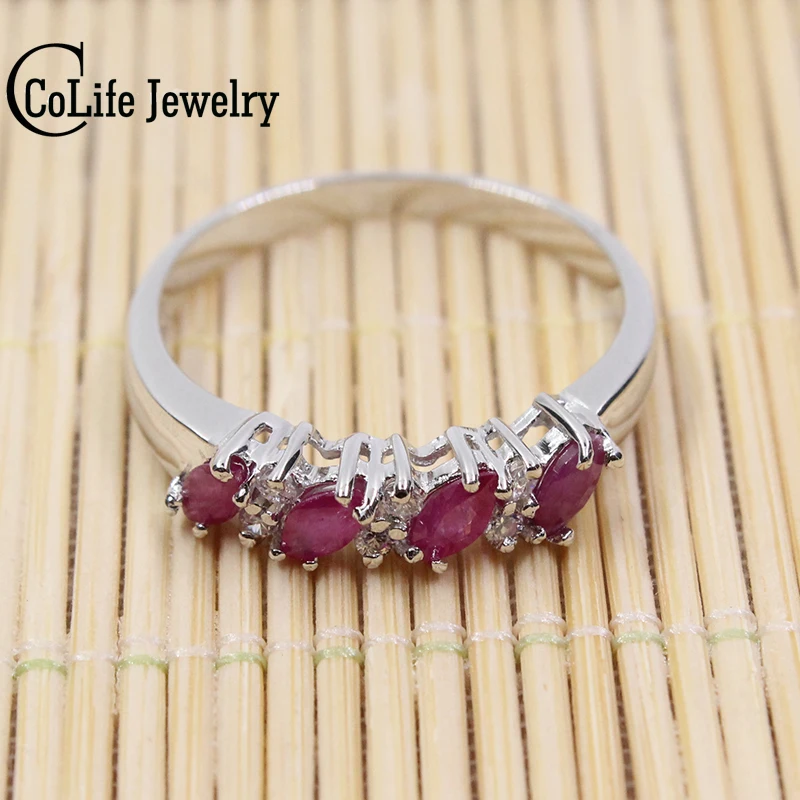 Hotsale Silver Ruby Engagement Ring for Woman 100% 2mm * 4mm Natural Ruby Ring 925 Sterling Silver Ruby Wedding Ring