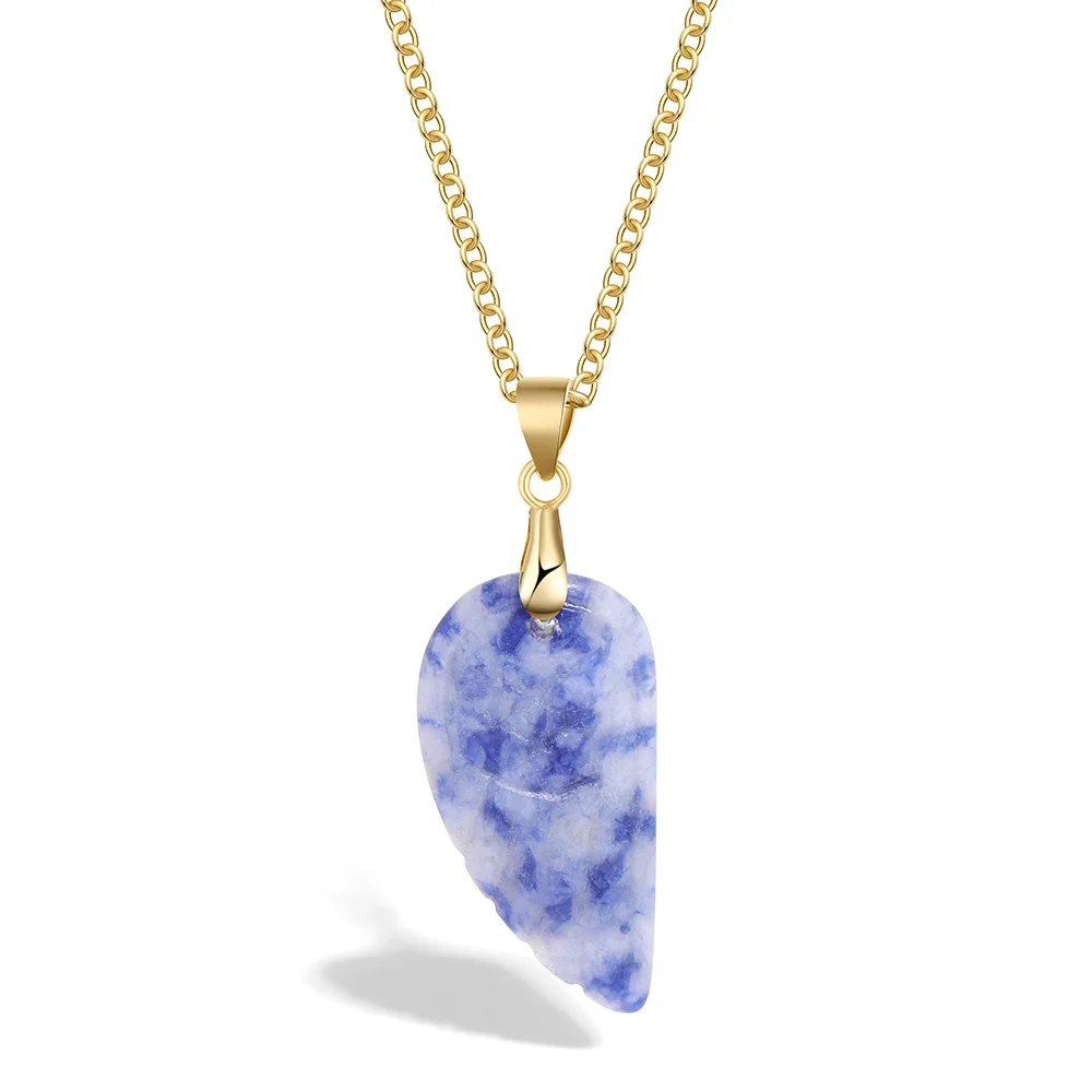 Lapis Lazuli Stone Wing Pendent Necklace Natural Stone Citrines Amethysts Quartzs Gold Color Chain Necklace Jewelry Gift