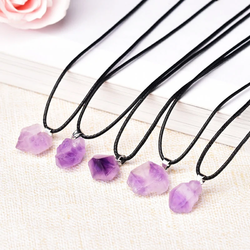 Natural Amethyst Irregular Rough Stone Pendant Clavicle Transparent Quartz Lady Fashion Jewelry Healing Lucky Necklace Gift