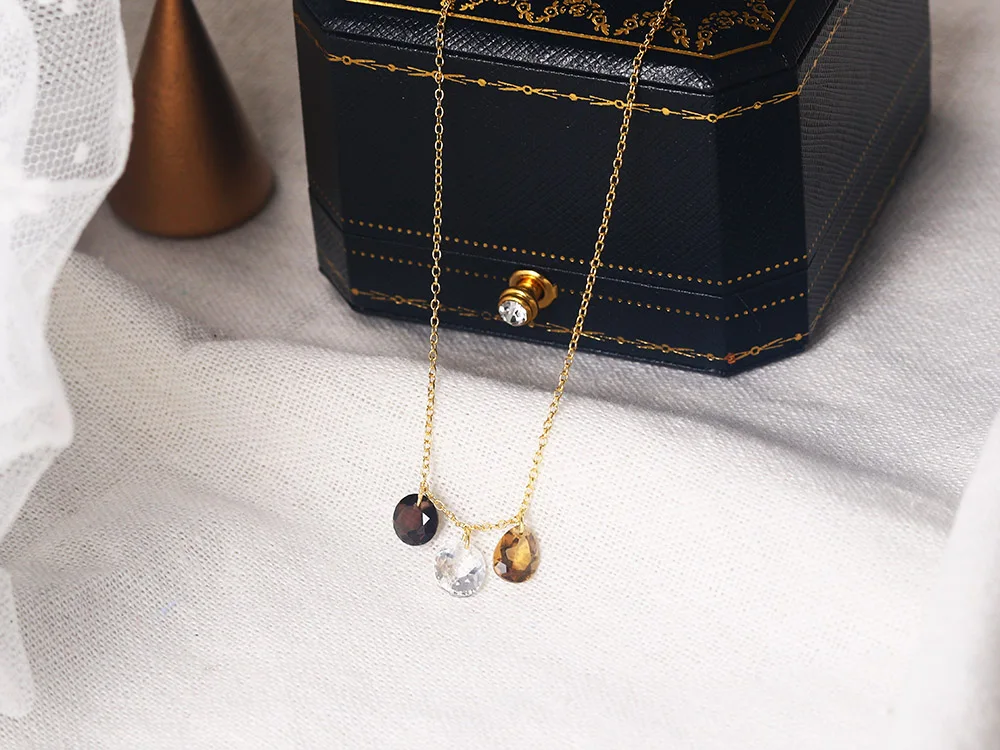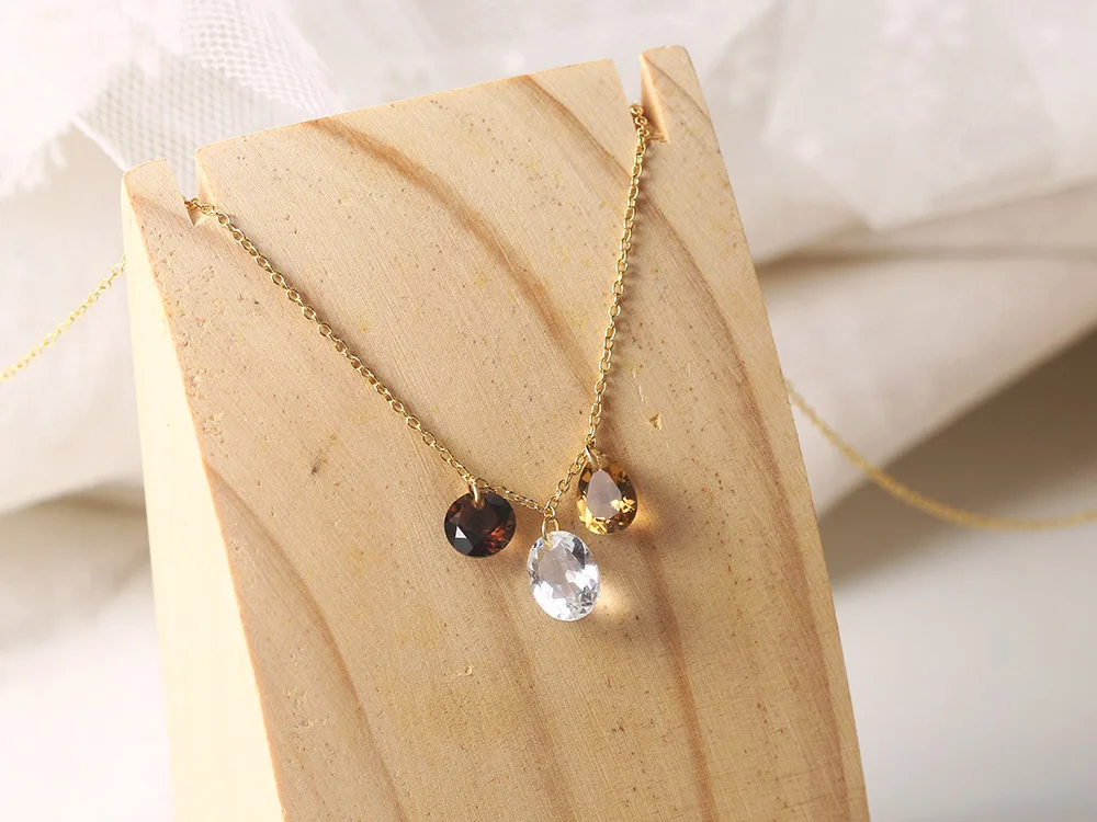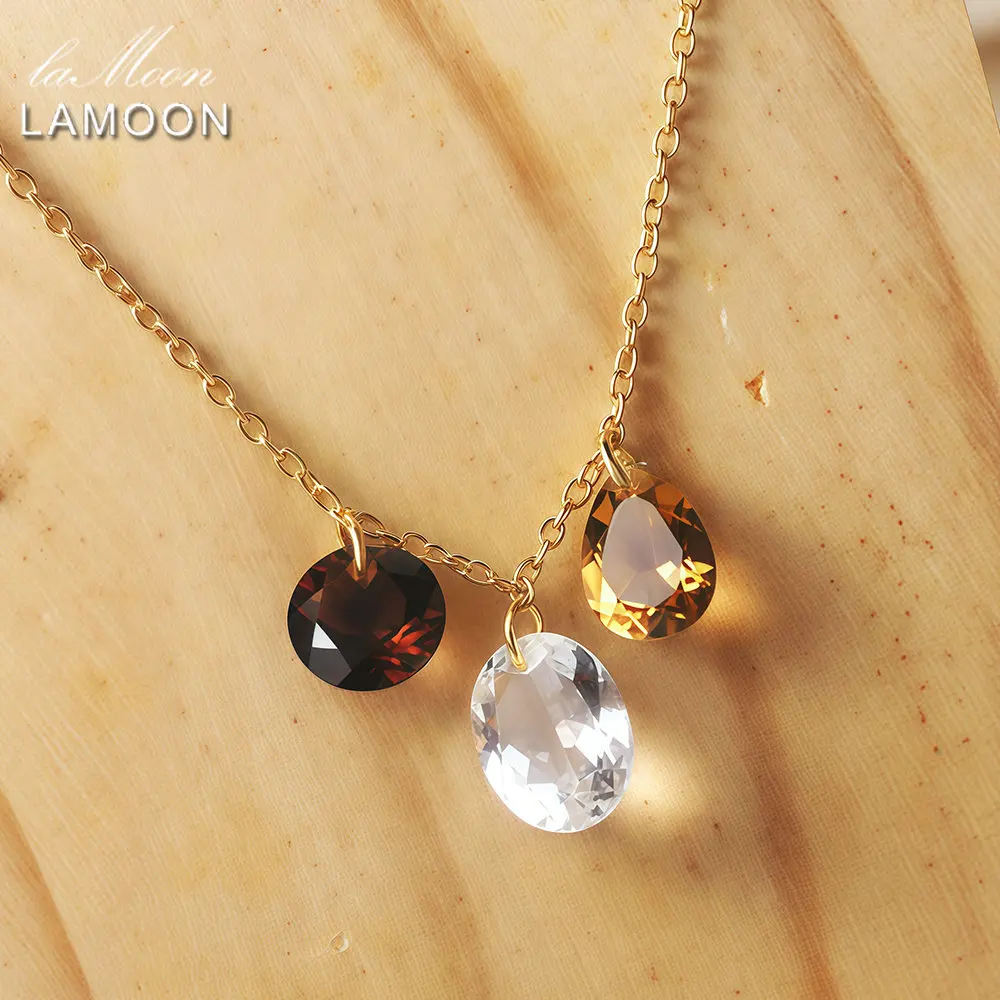 Pear Cut Natural Garnet Citrine Amethyst Blue Topaz 925 Sterling Silver Circle Pendant Necklace Colorful Gemstone Jewelry Choker