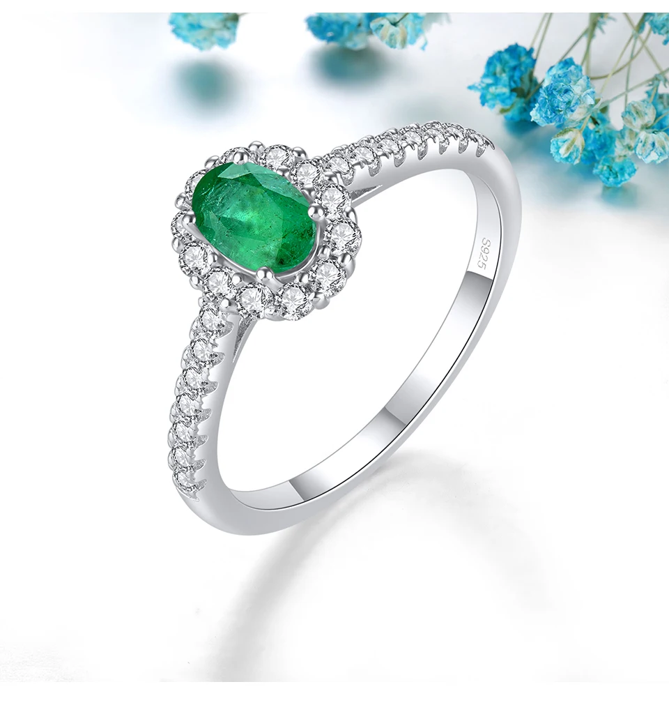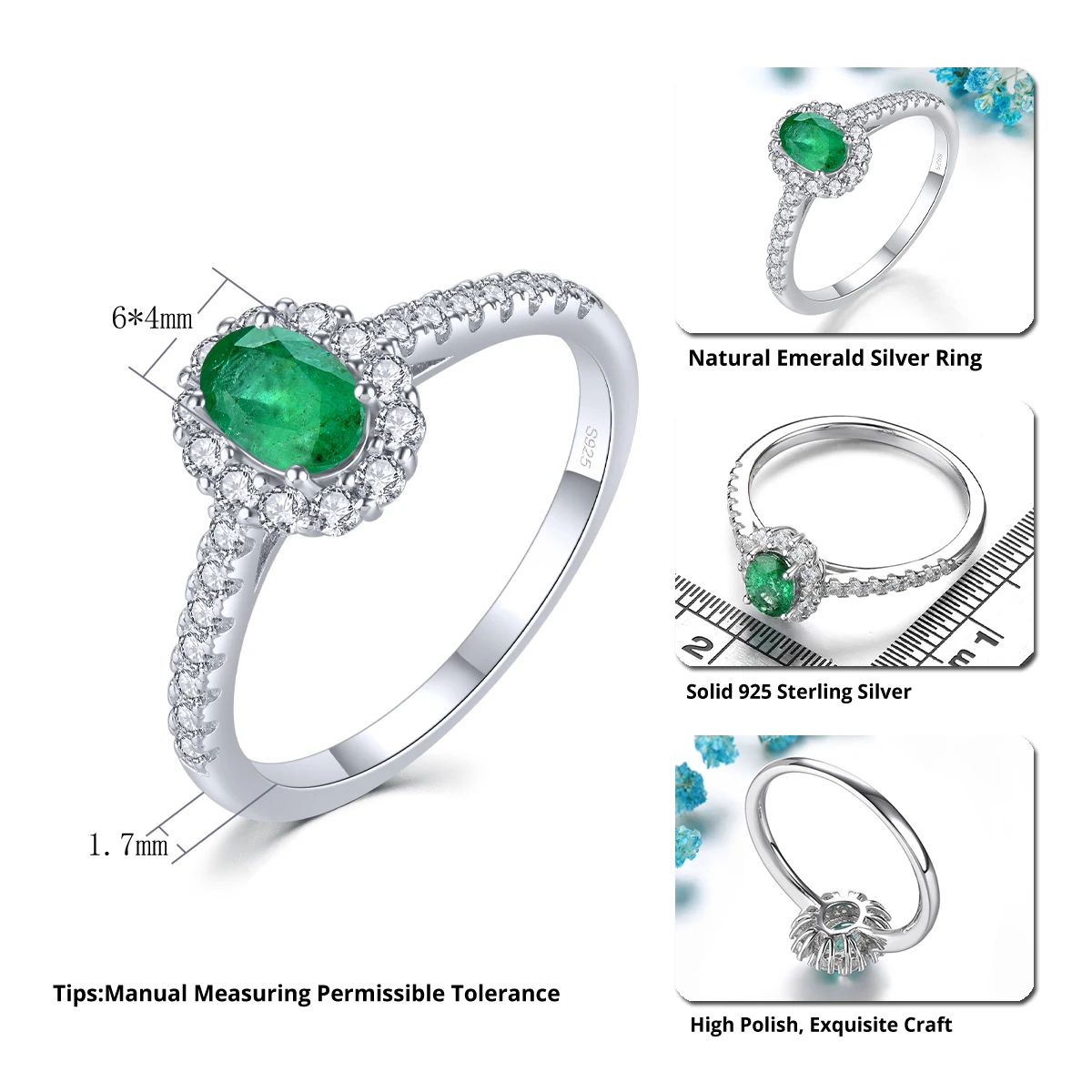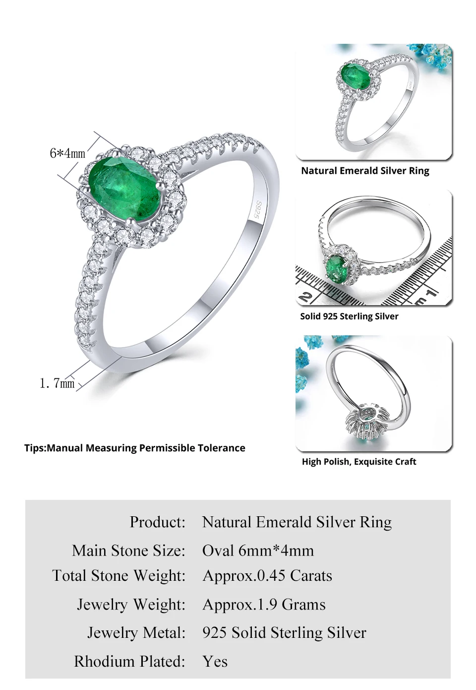 Natural Emerald Sterling Silver Rings 0.45 Carats Genuine Precious Gemstone Classic Fine Jewelrys Anniversary Engagement Gifts