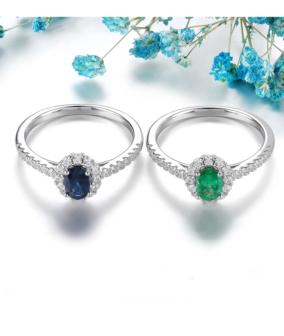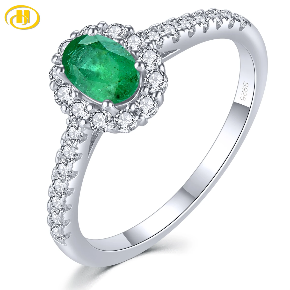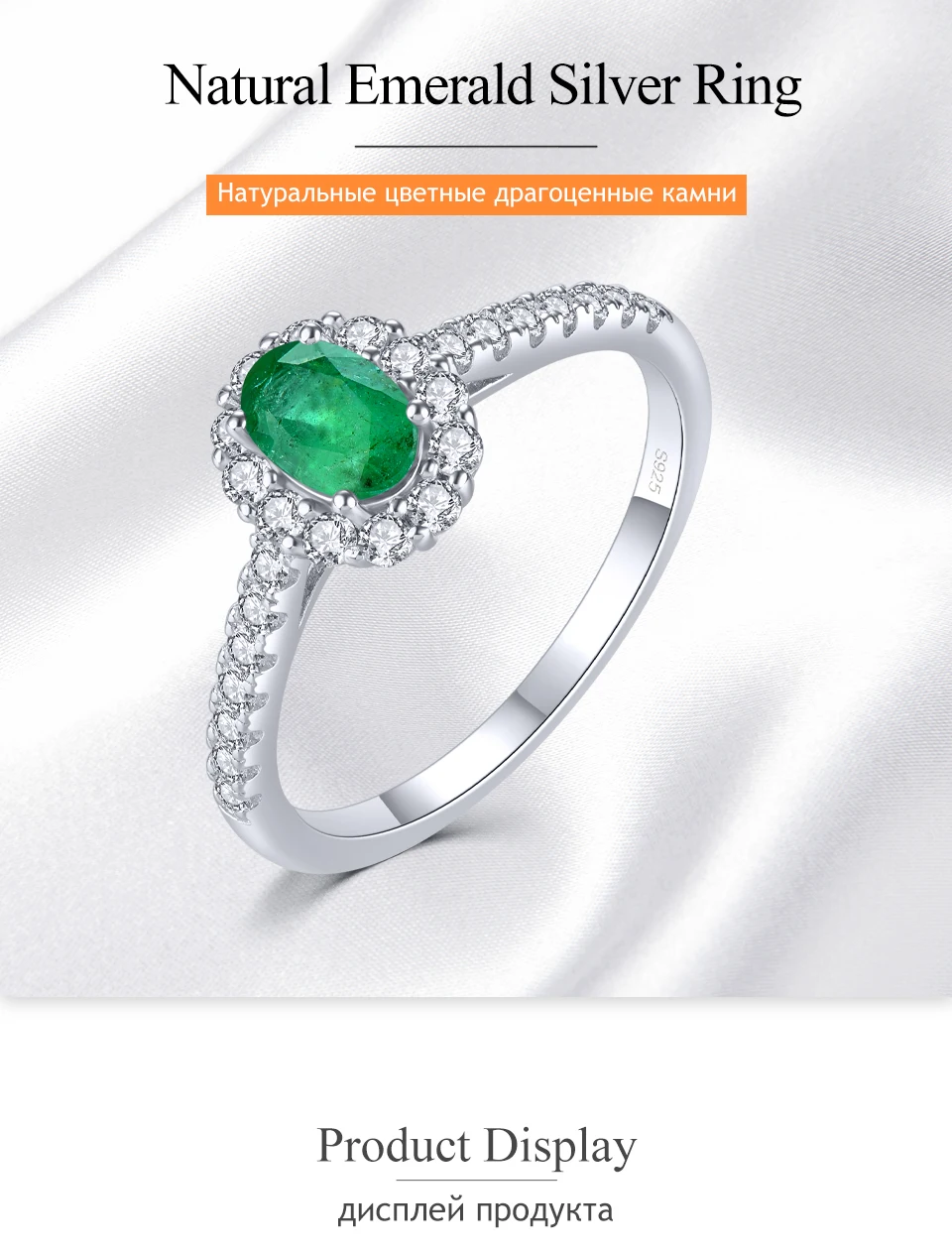 Natural Emerald Sterling Silver Rings 0.45 Carats Genuine Precious Gemstone Classic Fine Jewelrys Anniversary Engagement Gifts