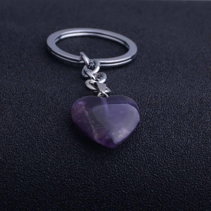 Natural Heart Stone Rose Quartz Keychain Crystal Healing Energy Opall Key Chain Ring On Bag Jewelry Wedding Party Gift