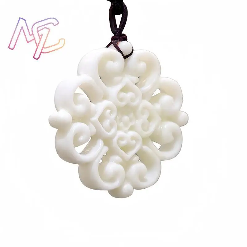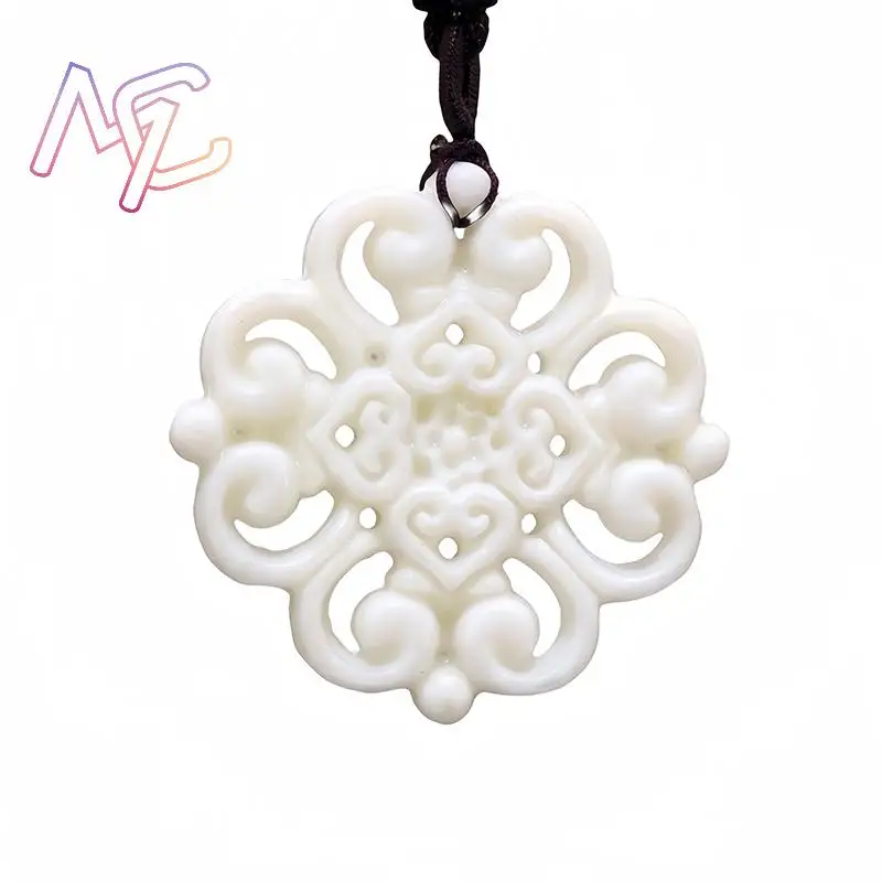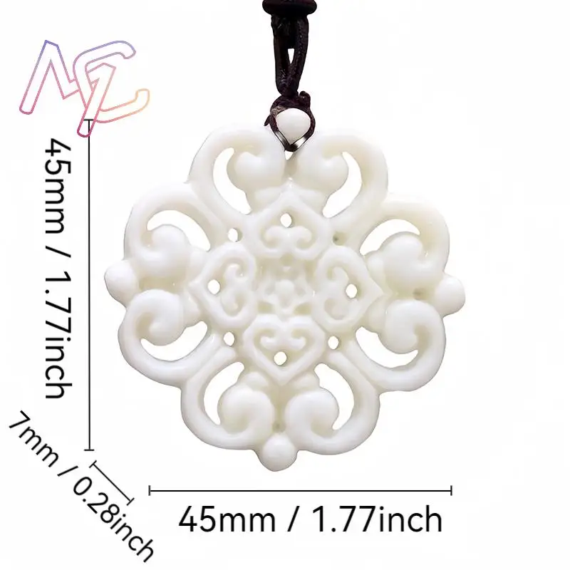 Natural Jade Flower Pendant Necklace Charm Stone Fashion Accessories Real Jewelry Designer Amulet Carved Gemstone Vintage