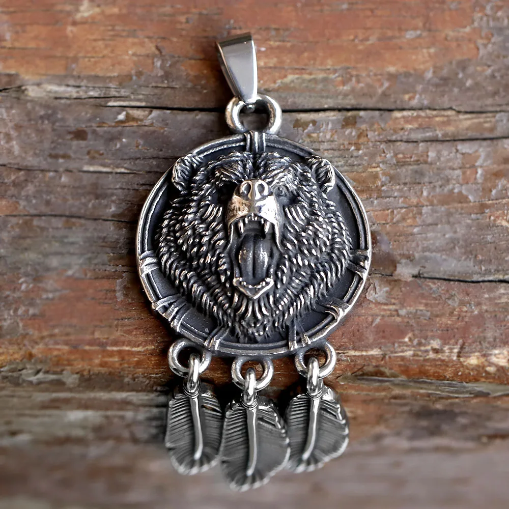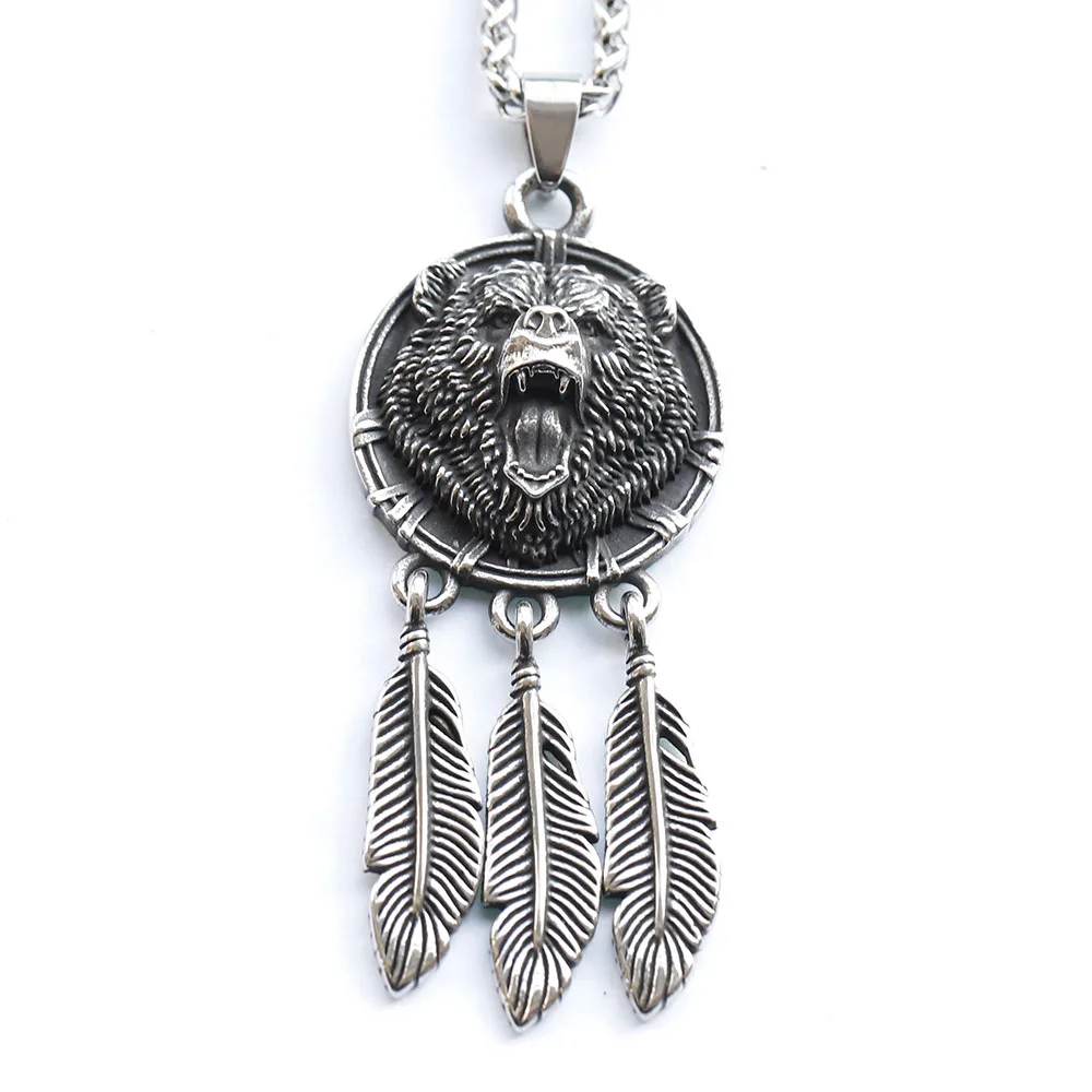 new stainless steel Amulet Viking Slavic God Symbol Warding Veles Bear Paw feather Pendant Necklace Jewelry