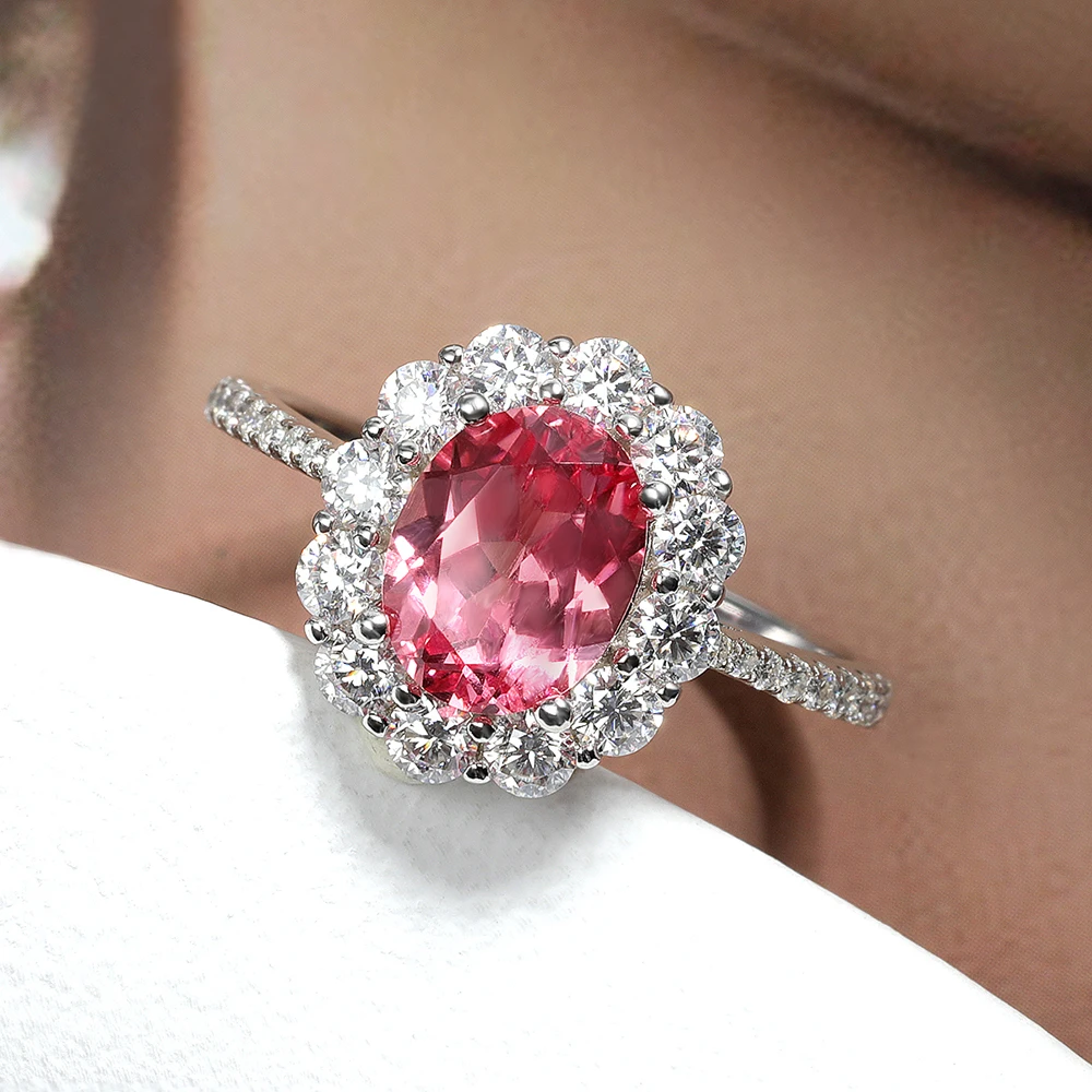 Main Stone Carat : 2CT(7x9mm) Lab Grown Ruby/Padparadscha Sapphire/Moissanite