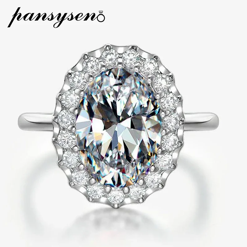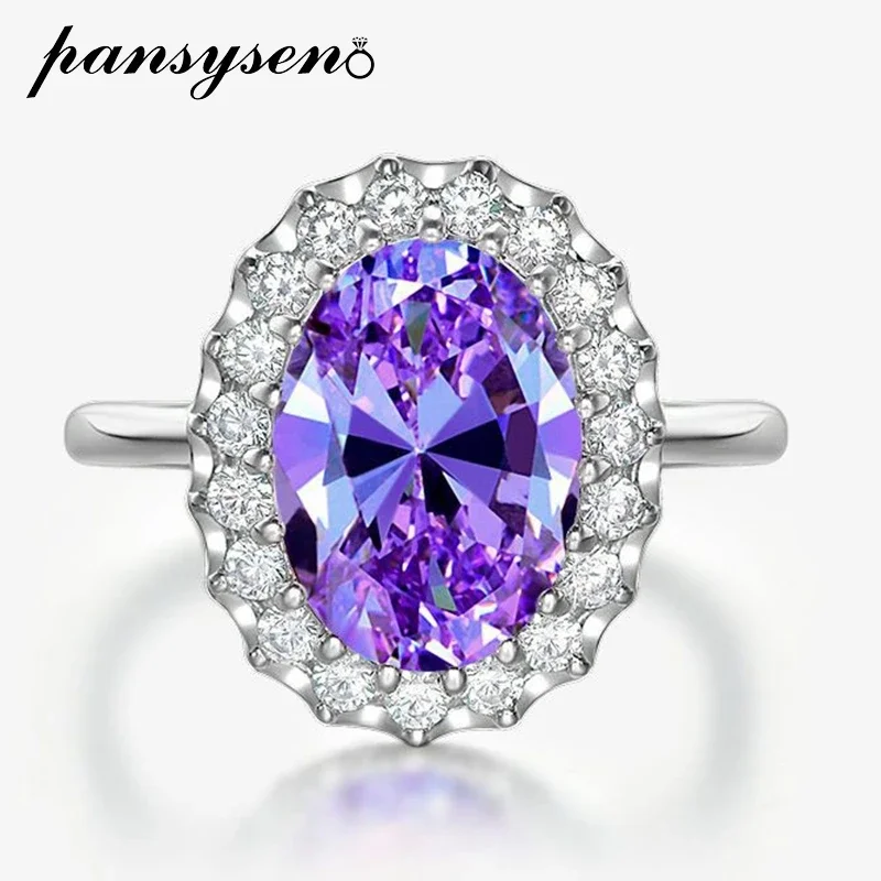 PANSYSEN Luxury 100% 925 Sterling Silver 8CT Oval Cut Amethyst Ruby Sapphire Diamond Ring for Women Cocktail Party Fine Jewelry