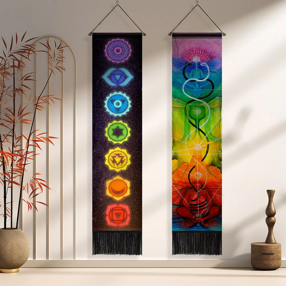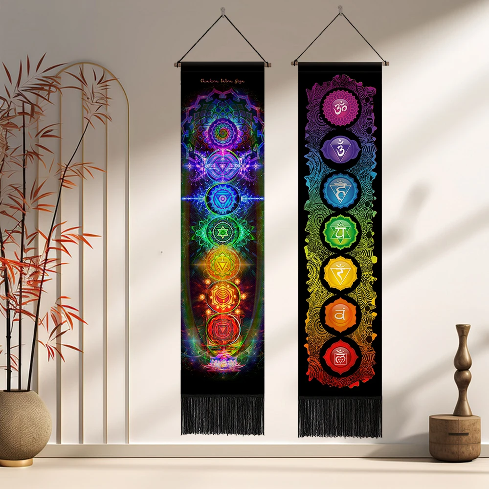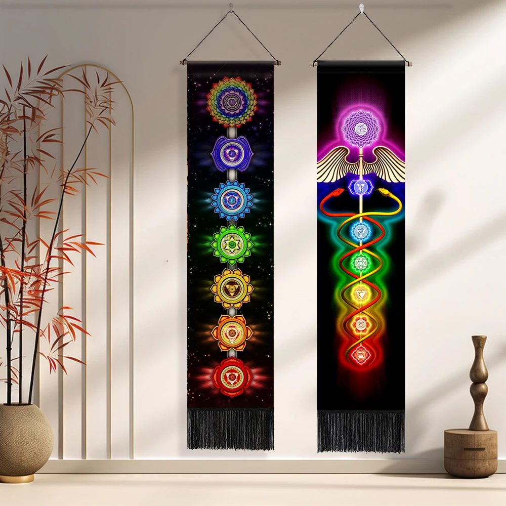 Seven Chakra Tapestry ,Hippie Mandala Chakras Wall Hanging , Yoga Meditation Tapestries for Spiritual Room Decor , 12.8″x 51.2″