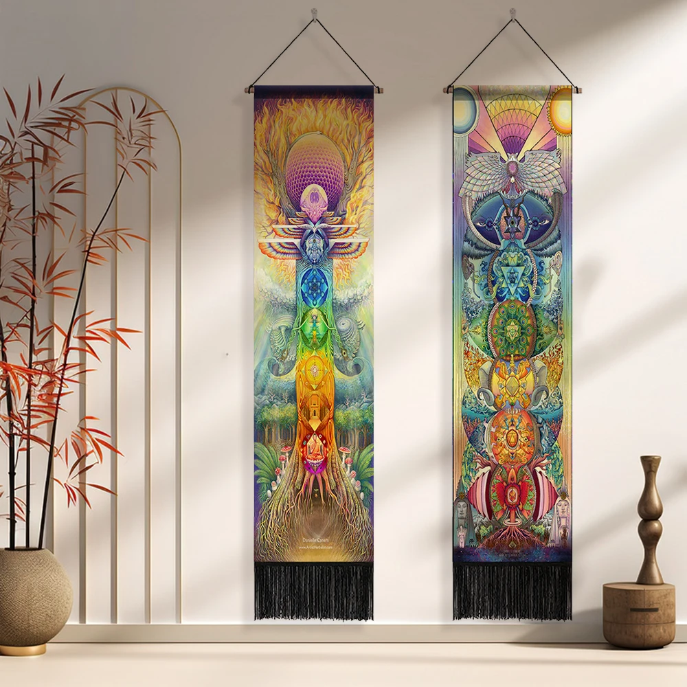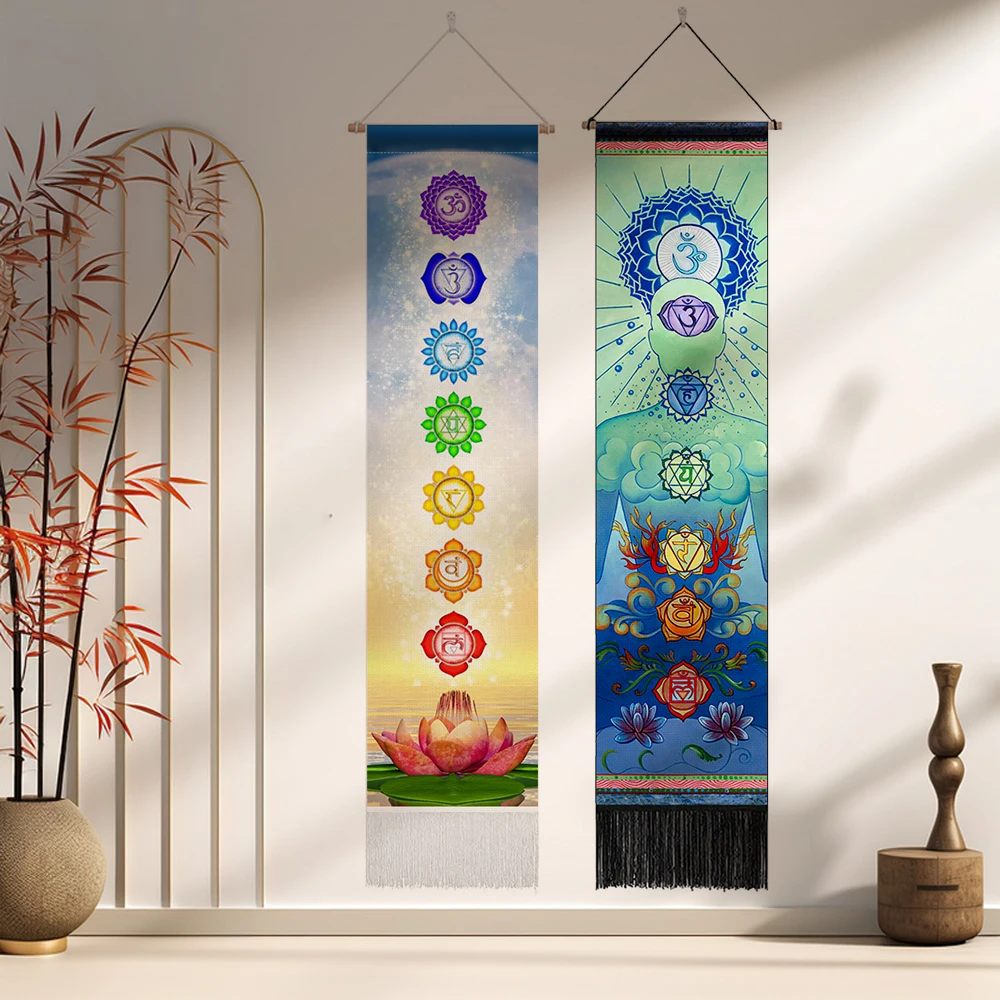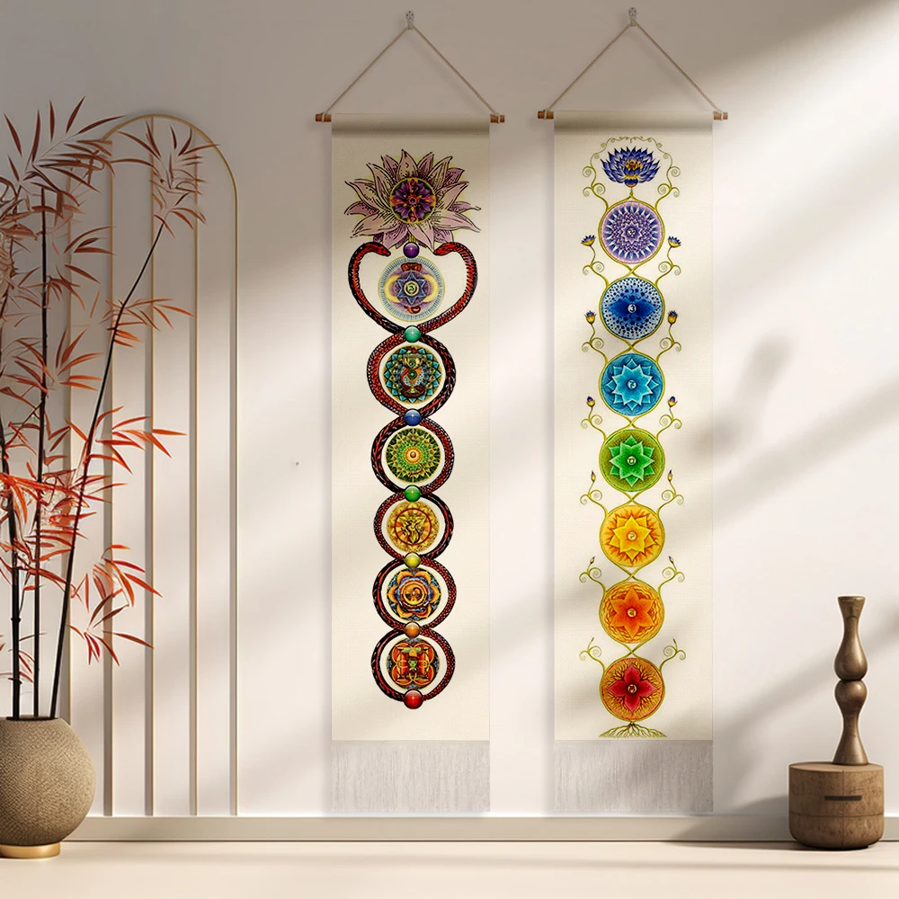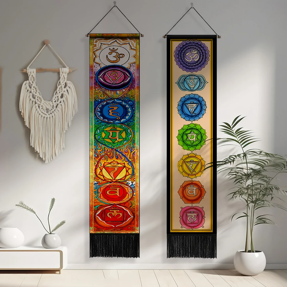 Seven Chakra Tapestry ,Hippie Mandala Chakras Wall Hanging , Yoga Meditation Tapestries for Spiritual Room Decor , 12.8″x 51.2″