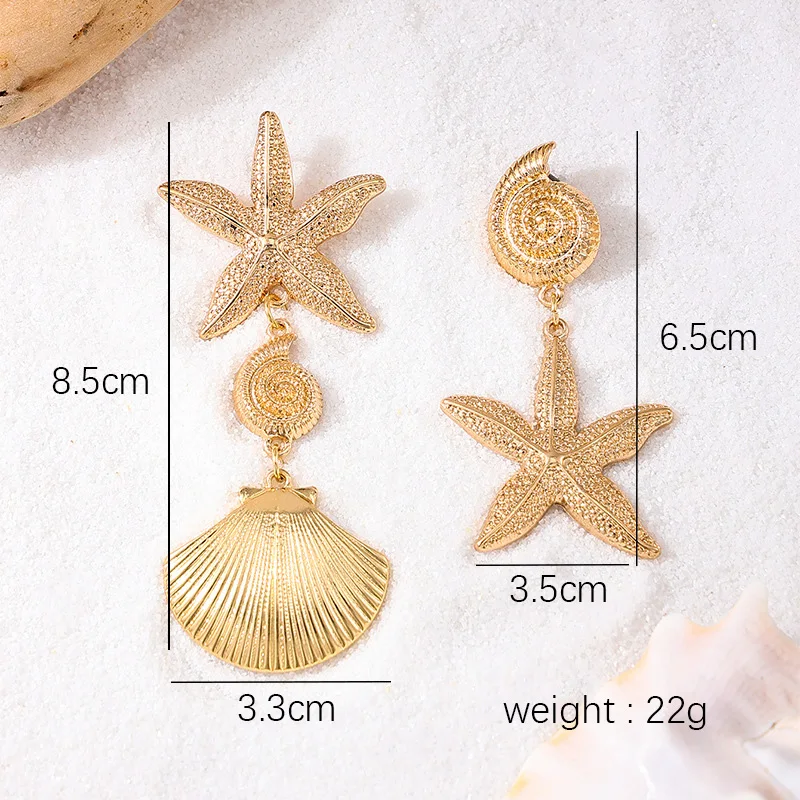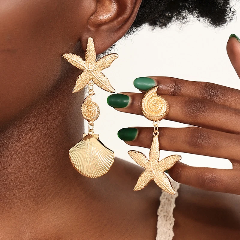 Vintage Metallic Exaggerate Shell Starfish Women Earrings Geometric Trendy Fashion Jewelry Personality Exquisite Unique RG0045