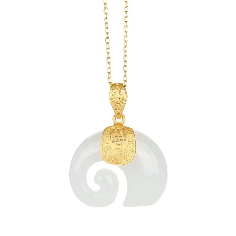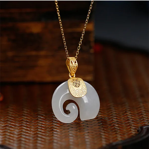 Vintage White Hetian Jade Elephant Pendant 18K Gold Plated Chain Necklace Stainless Steel Sapphire Choker Jewelry for Women