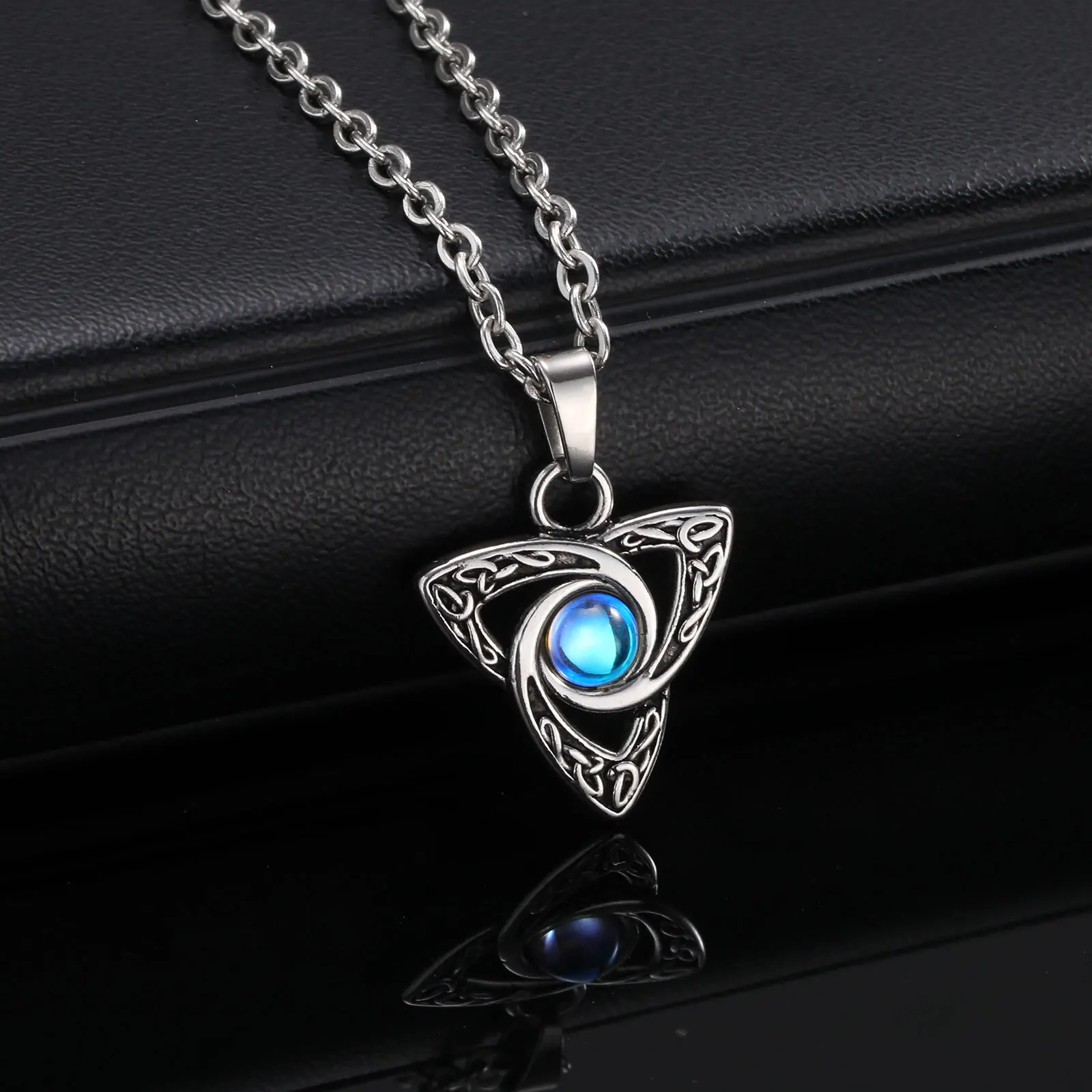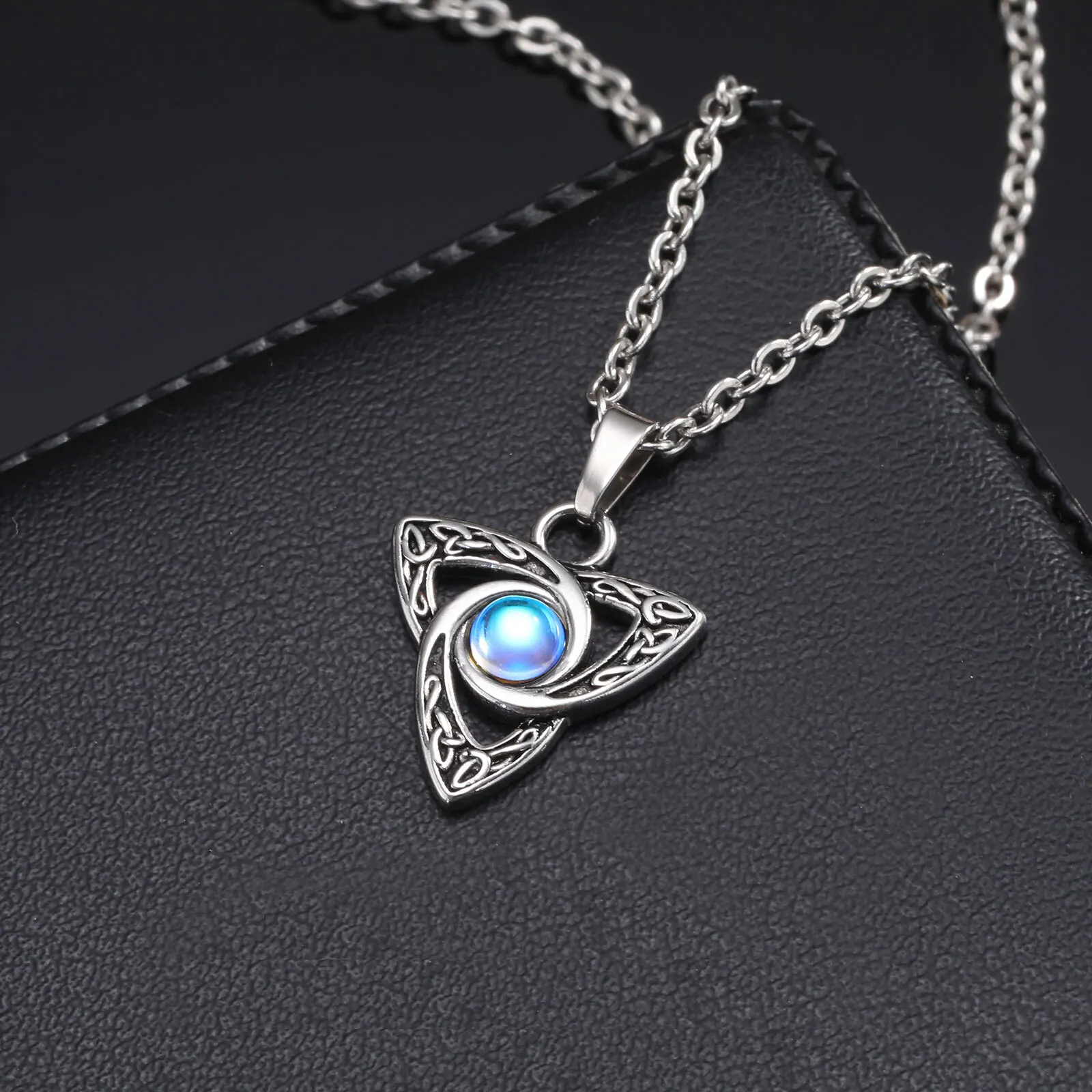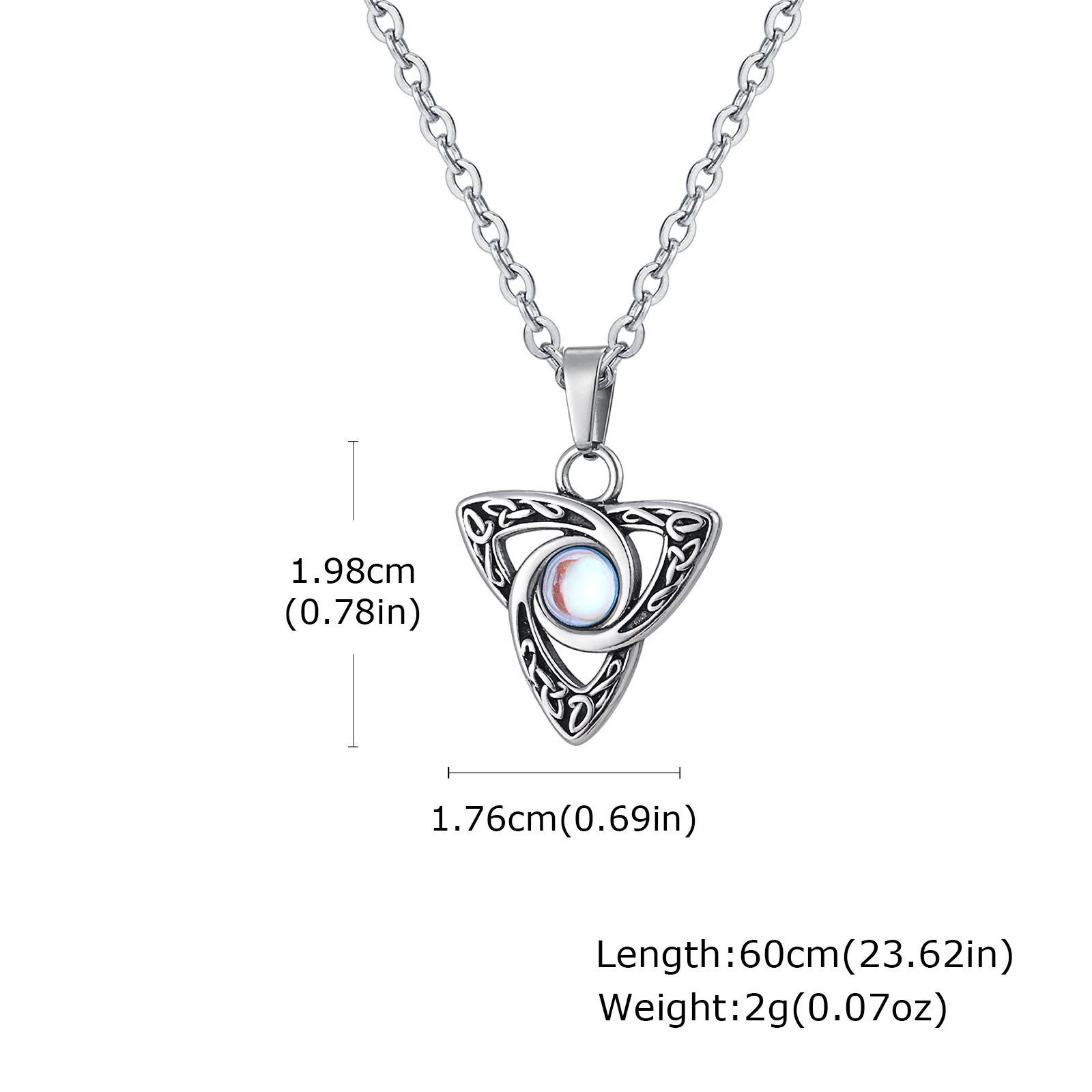 Vnox Vintage Celtic Knot Pendant with Moonstone Inlaid Necklaces for Men Women, Witch Knot Collar Jewelry with Box Chain