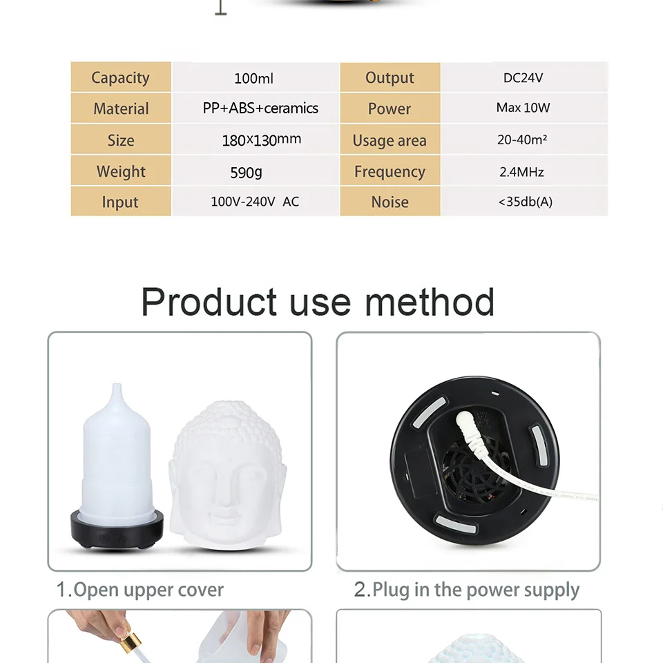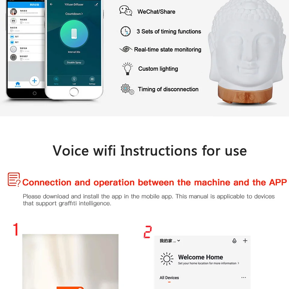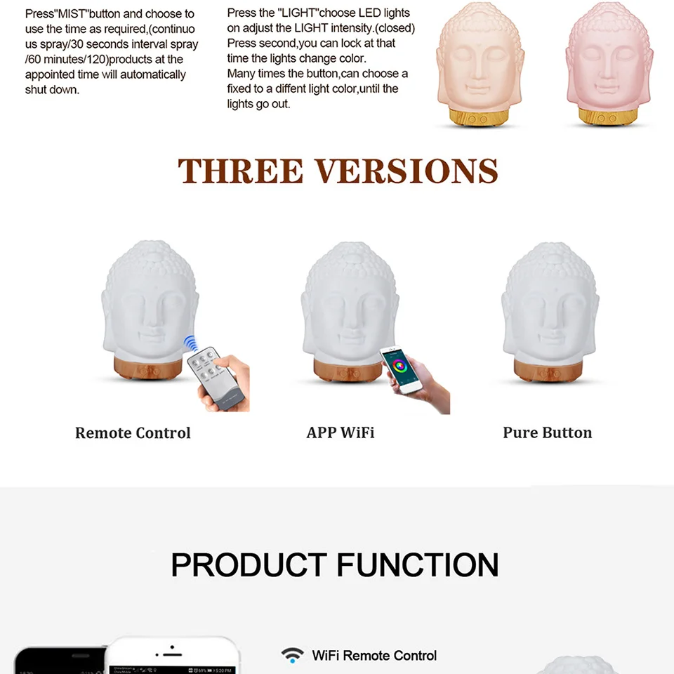 Wifi Control Air Humidifier Aroma Essential Oil Diffuser 7 Colors LED Night Light Cool Buddha Mist Maker Aromatherapy For Home