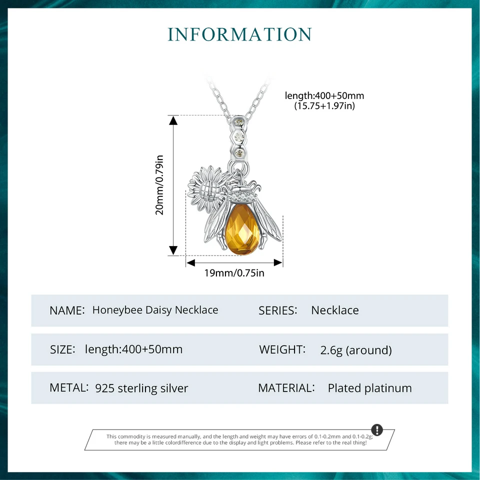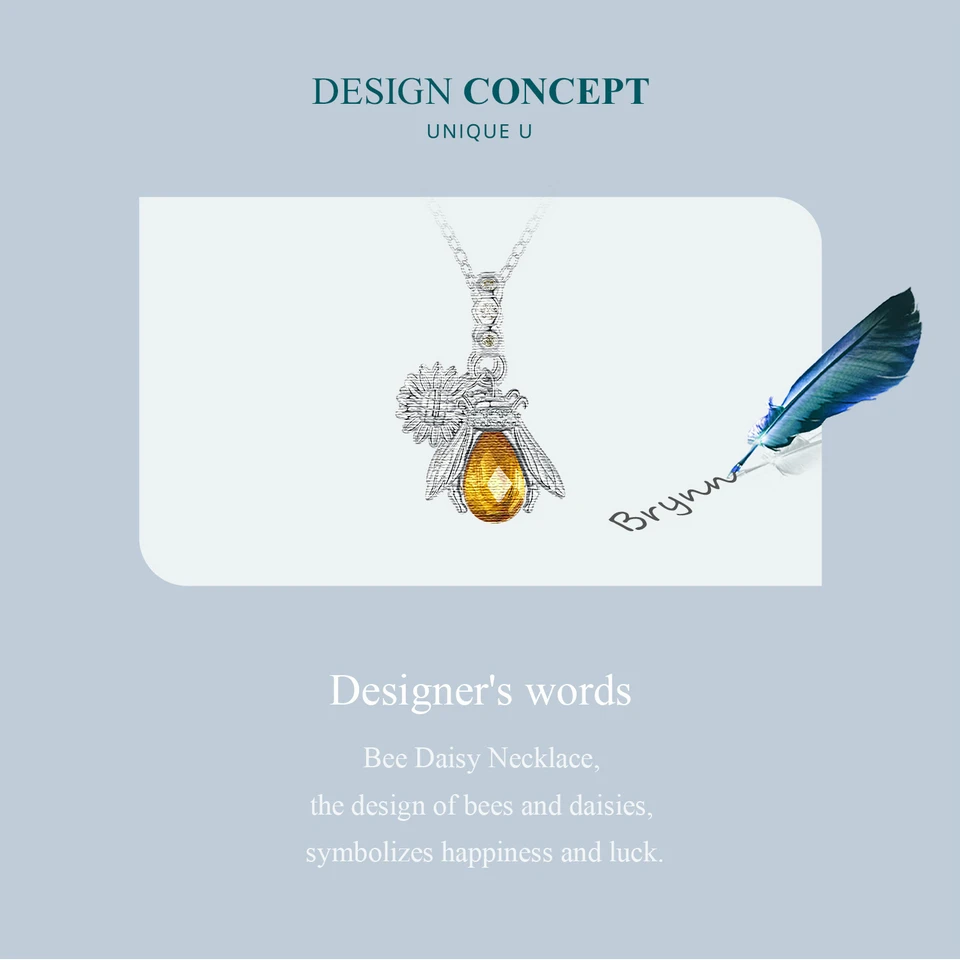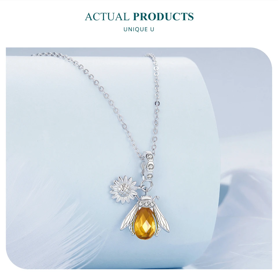 WOSTU Real 925 Sterling Brazil Citrine Crystal Honeybee Daisy Pendant Necklace For Women Wedding Party Bridal Gift Wholesale
