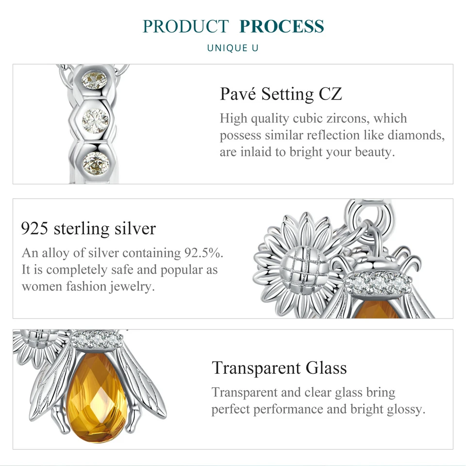 WOSTU Real 925 Sterling Brazil Citrine Crystal Honeybee Daisy Pendant